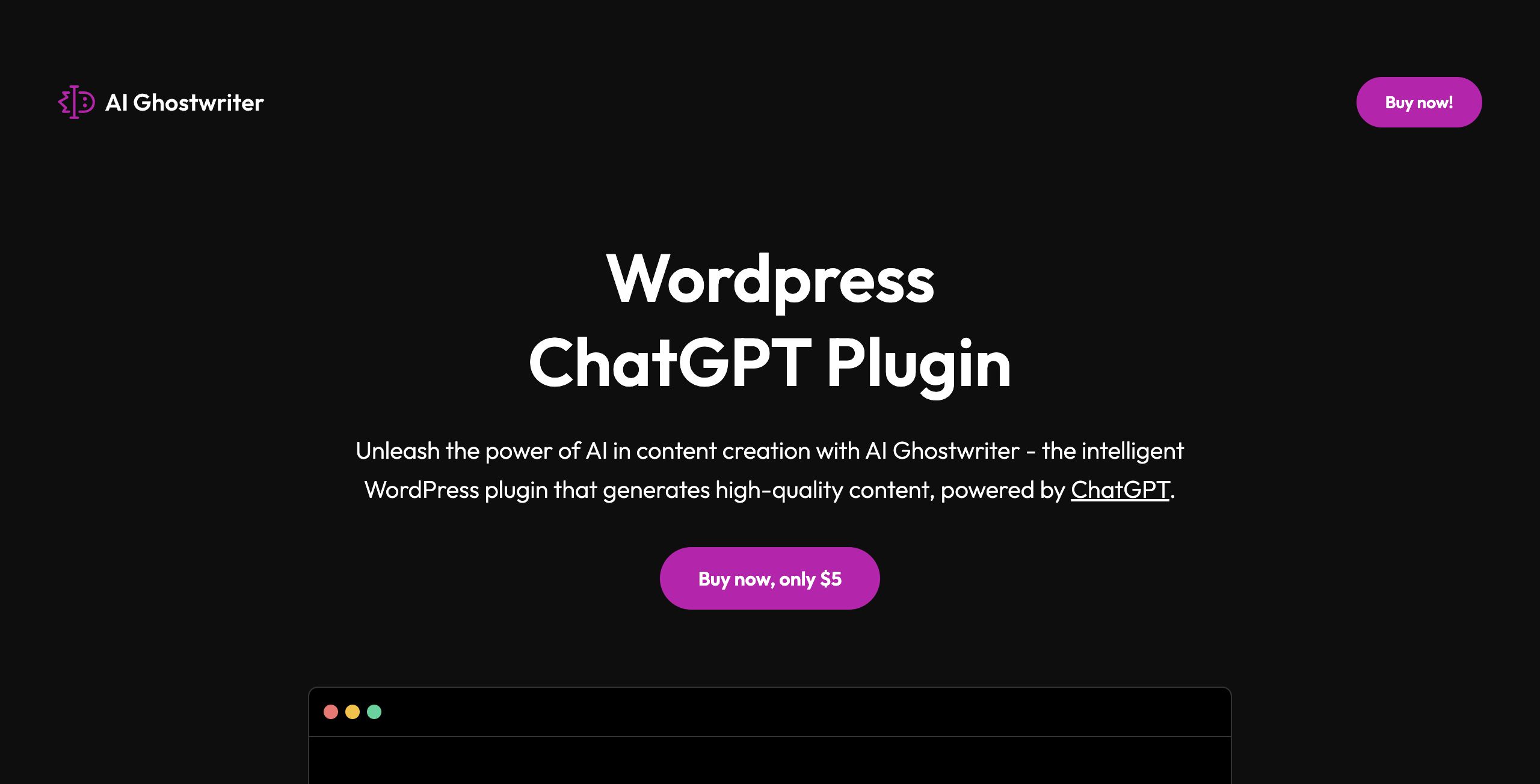 The Wordpress ChatGPT Plugin is a content creation tool powered by AI Ghostwriter that leverages ChatGPT technology to generate high-quality content for WordPress websites. Designed primarily for bloggers, website owners, and content creators, this plugin aims to streamline the content generation process, saving both time and effort. Its affordable price and promising capabilities make it a noteworthy option in today's AI-driven content creation space.