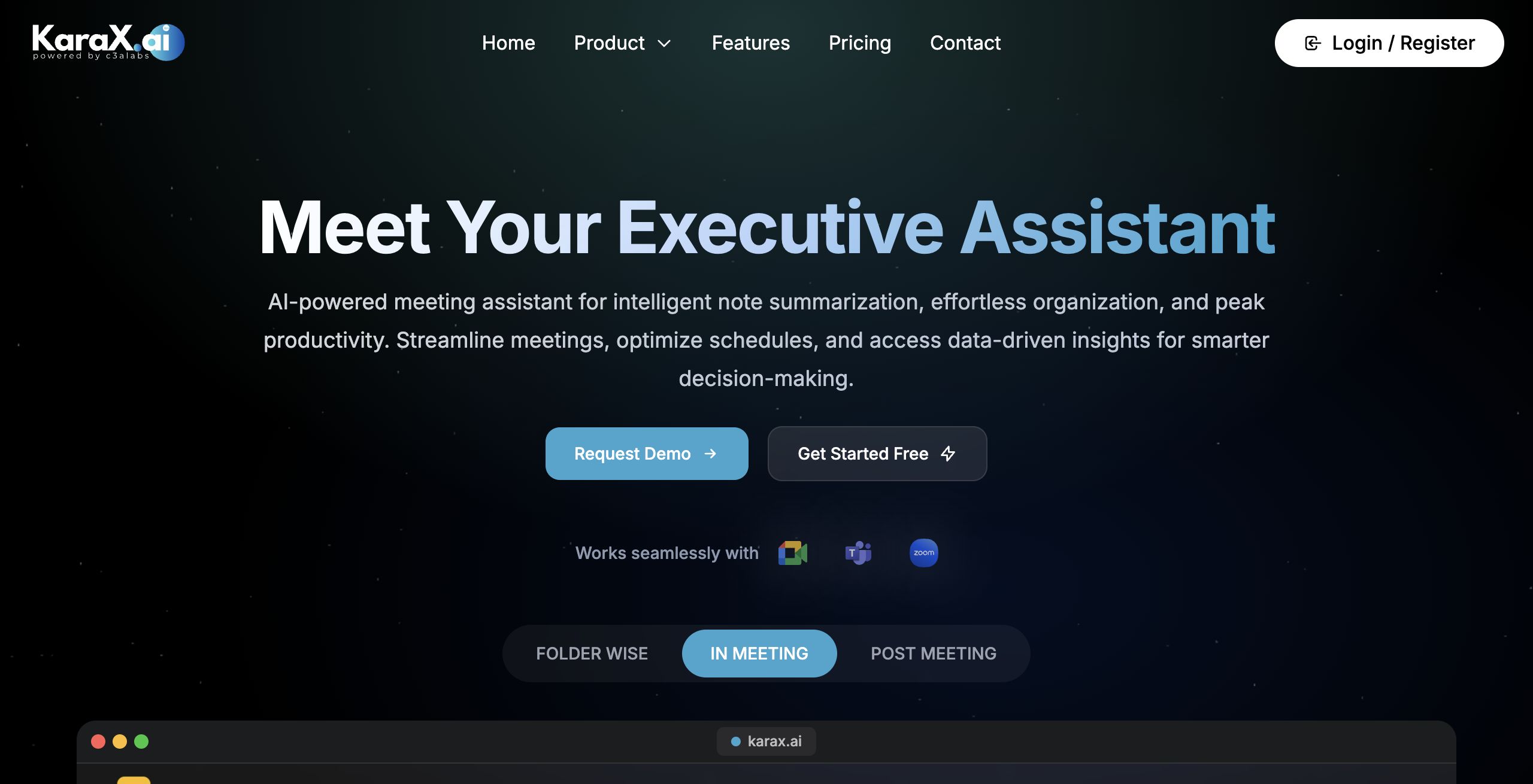 KaraX.ai offers a robust suite of functionalities that set it apart in the competitive landscape of meeting productivity tools. Its standout features include: