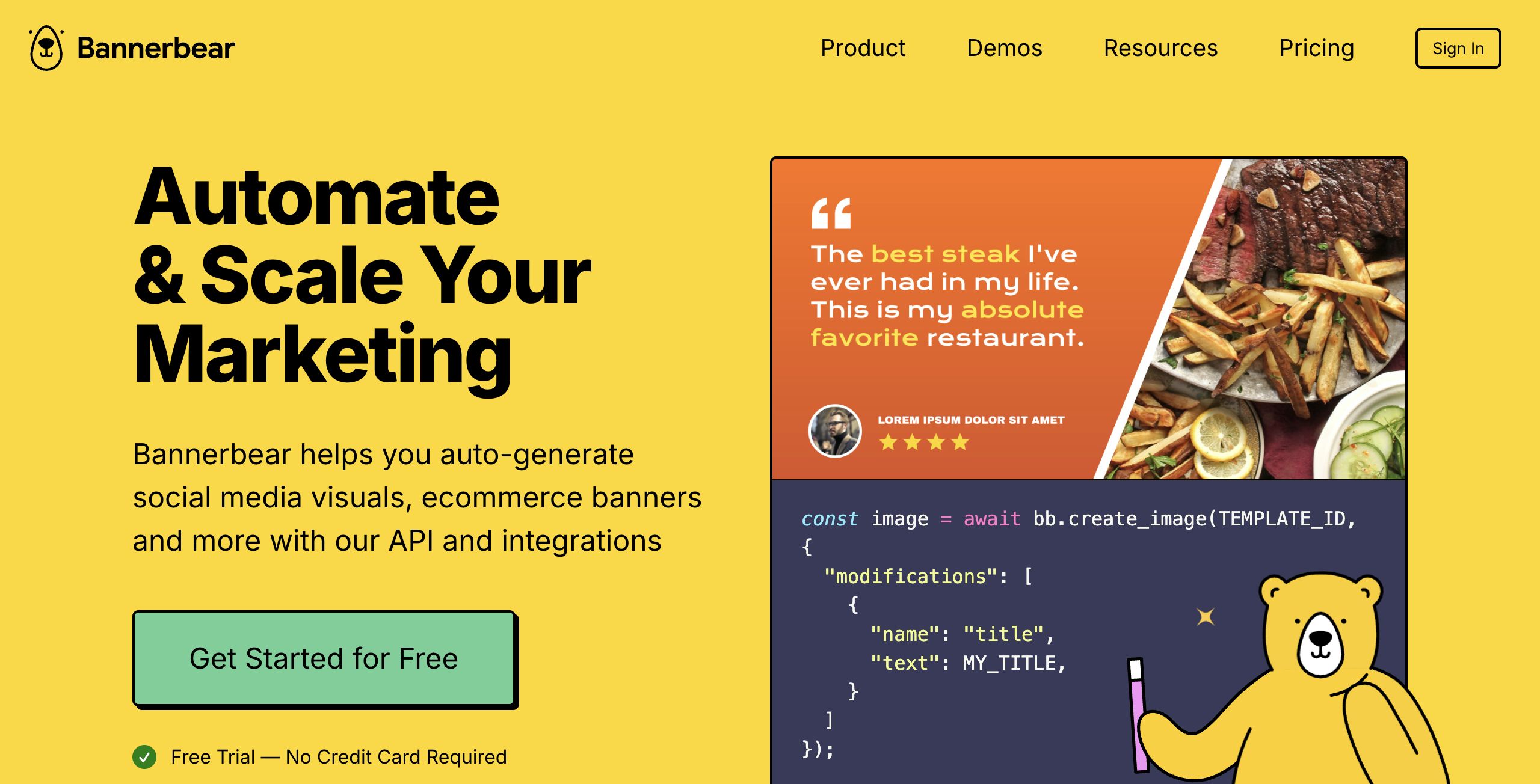 - Interactive Demos: The website provides engaging demos and free tools that allow prospective users to experience the capabilities of Bannerbear firsthand.