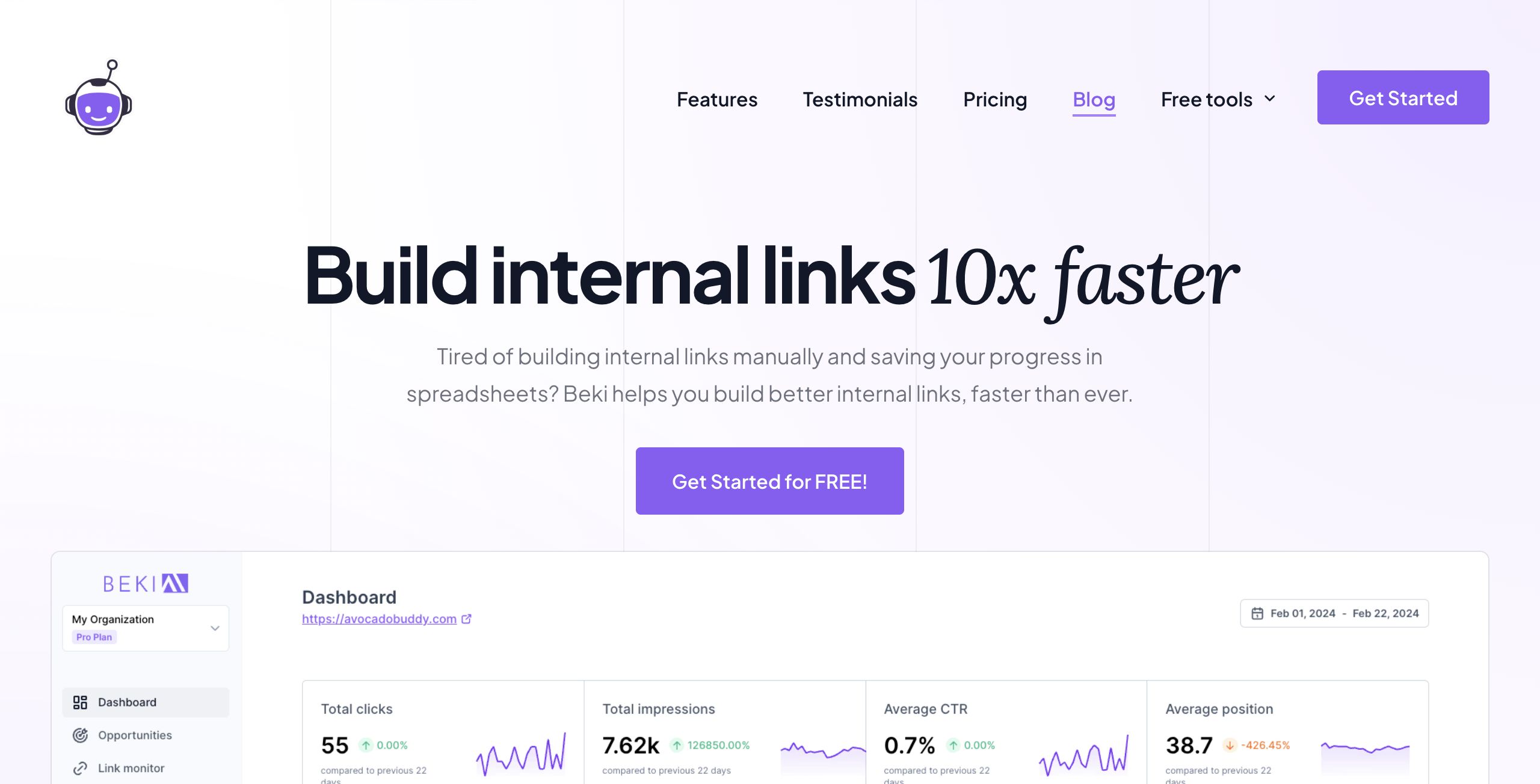 BekiAI Internal Linking Tool is accessible with a free entry point as indicated by the “Get Started for FREE!” messaging. The simple pricing model emphasizes ease of adoption, especially for small to medium-sized businesses and teams looking for cost-effective SEO improvements. When compared to the benefits of automated internal linking and enhanced SEO capabilities, this free access strategy presents considerable value, particularly against competitors with more complex or expensive pricing structures.
