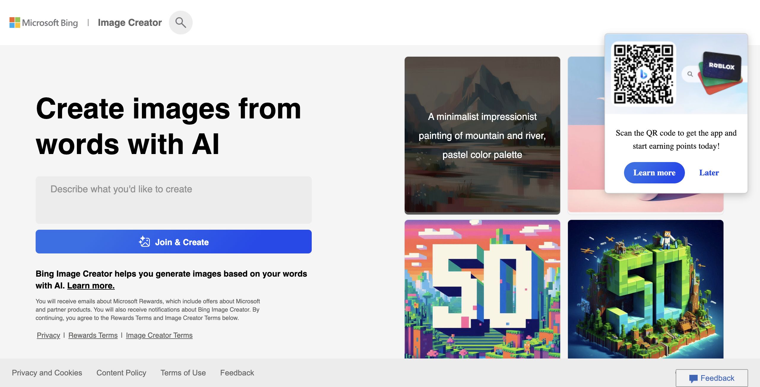 Bing Image Creator is a cutting-edge AI tool developed by Microsoft that uses the advanced capabilities of DALLE-2 to generate images from text-based prompts. Designed for creative individuals, marketers, and anyone curious about AI-driven art generation, this tool explores the intersection of technology and creativity. Its integration with Microsoft Rewards adds an innovative twist, allowing users to redeem reward points for performance boosts, making it highly relevant in today’s rapidly evolving digital art landscape.