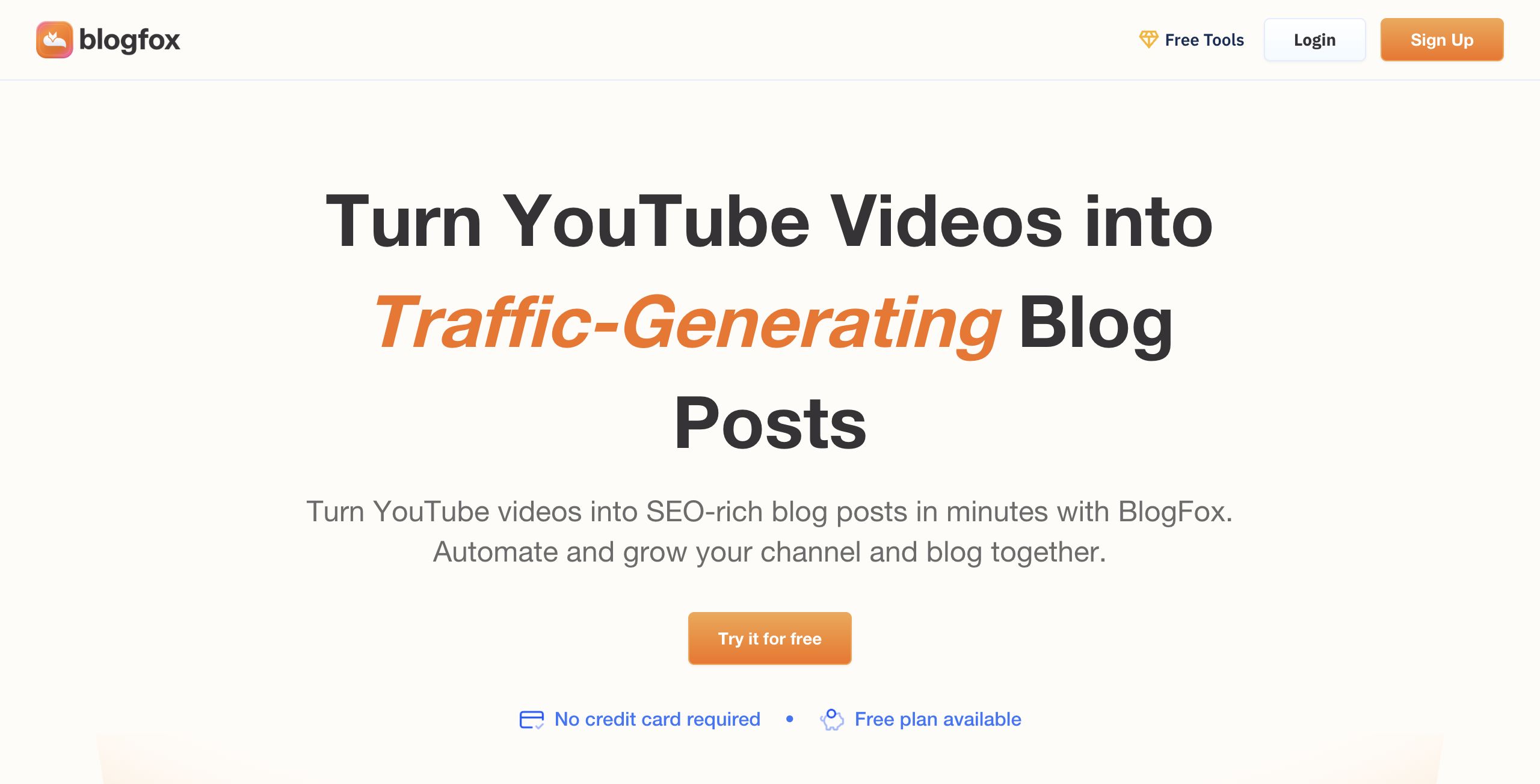 BlogFox offers a free plan that allows users to try the tool with no credit card required. This pricing structure makes it accessible for individuals and businesses looking to test out the platform before committing to a paid plan. Given its comprehensive feature set, automated processes, and the significant time savings it offers, BlogFox provides excellent value, especially for content creators focused on leveraging YouTube content to boost SEO and drive organic traffic.