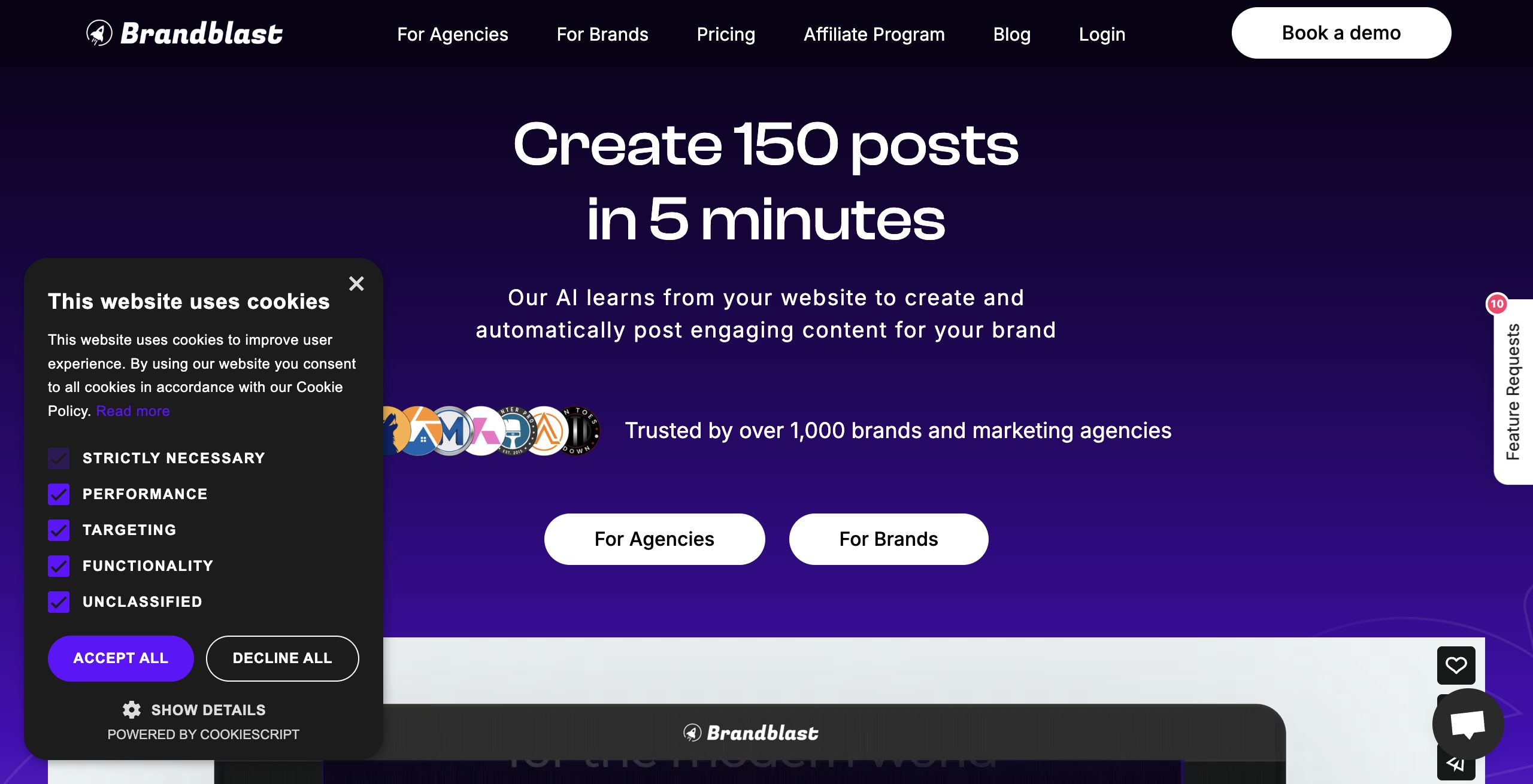 - Personalization at Scale: Designed for agencies and brands managing multiple accounts, Brandblast.ai offers personalization capabilities to tailor content to different audiences.