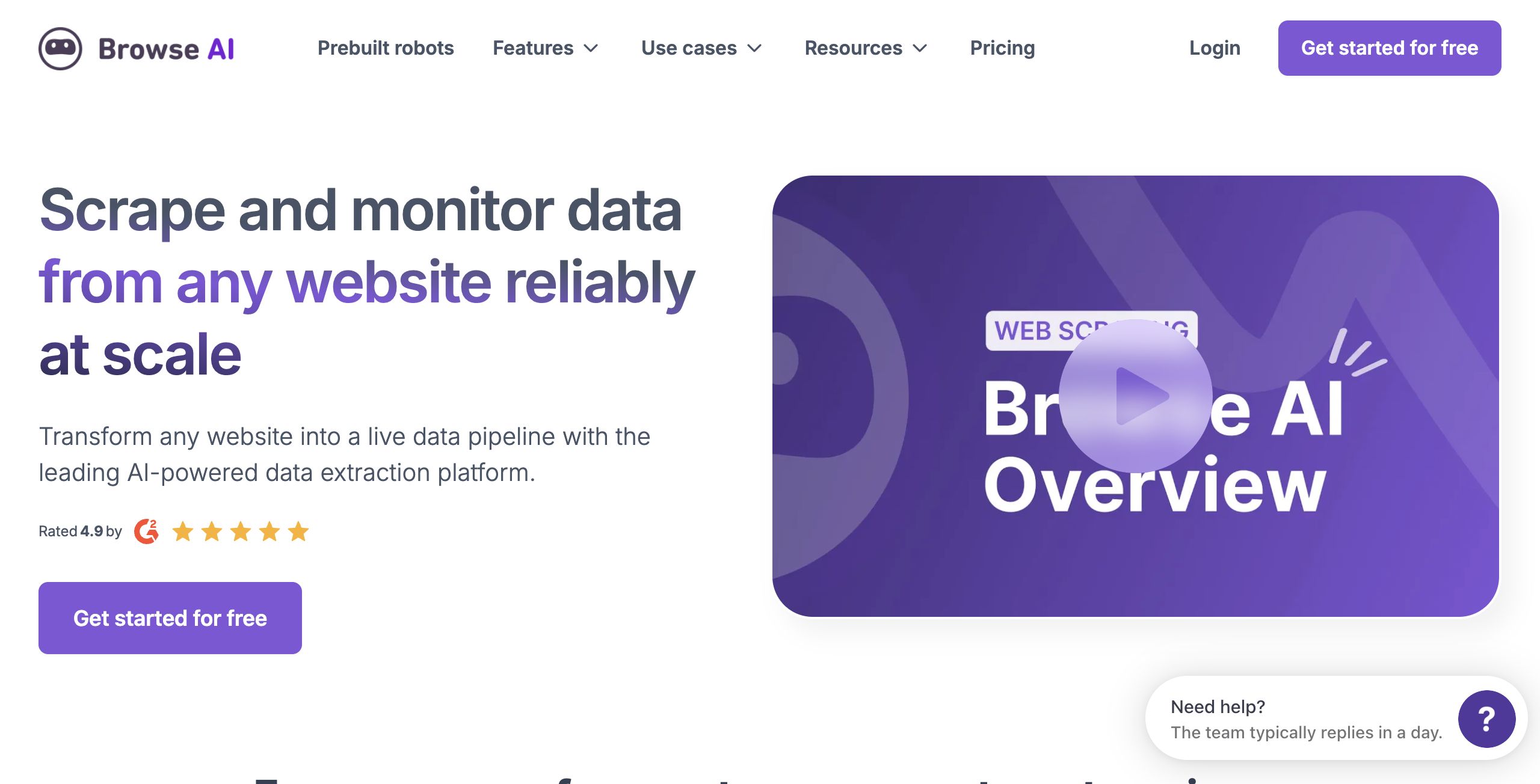 Browse AI offers a range of functionalities that make it an attractive solution for users who need reliable and scalable data extraction tools: