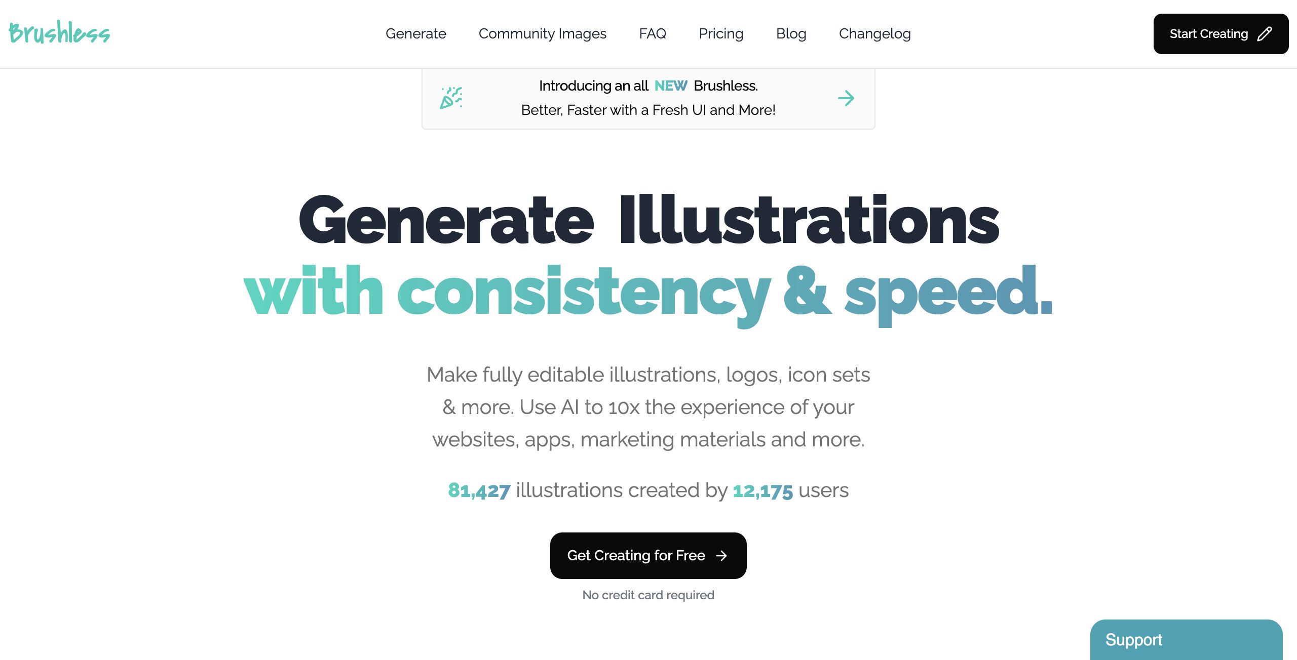 Brushless.ai is an AI-powered platform designed for creating, editing, and customizing vector graphics and illustrations using natural language prompts and reference images. It caters to both professionals and novices, offering an accessible and efficient solution for generating high-quality, fully editable vector artwork. This review examines Brushless.ai in the context of its fast turnaround, cost-effective pricing, and ease of use, making it relevant for individuals and teams seeking to streamline their design workflows.