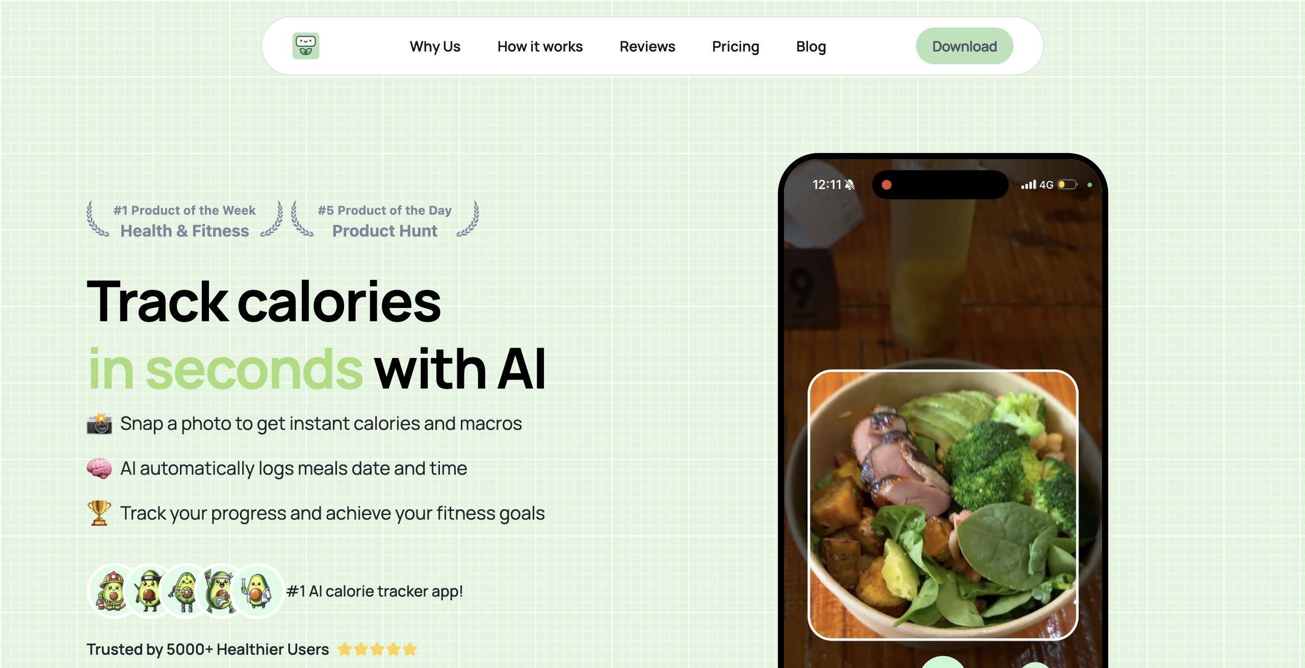 - AI-Powered Photo Recognition: Simply snap a photo of your meal and let the app accurately identify food items and log calories and macronutrients (proteins, carbs, and fats).