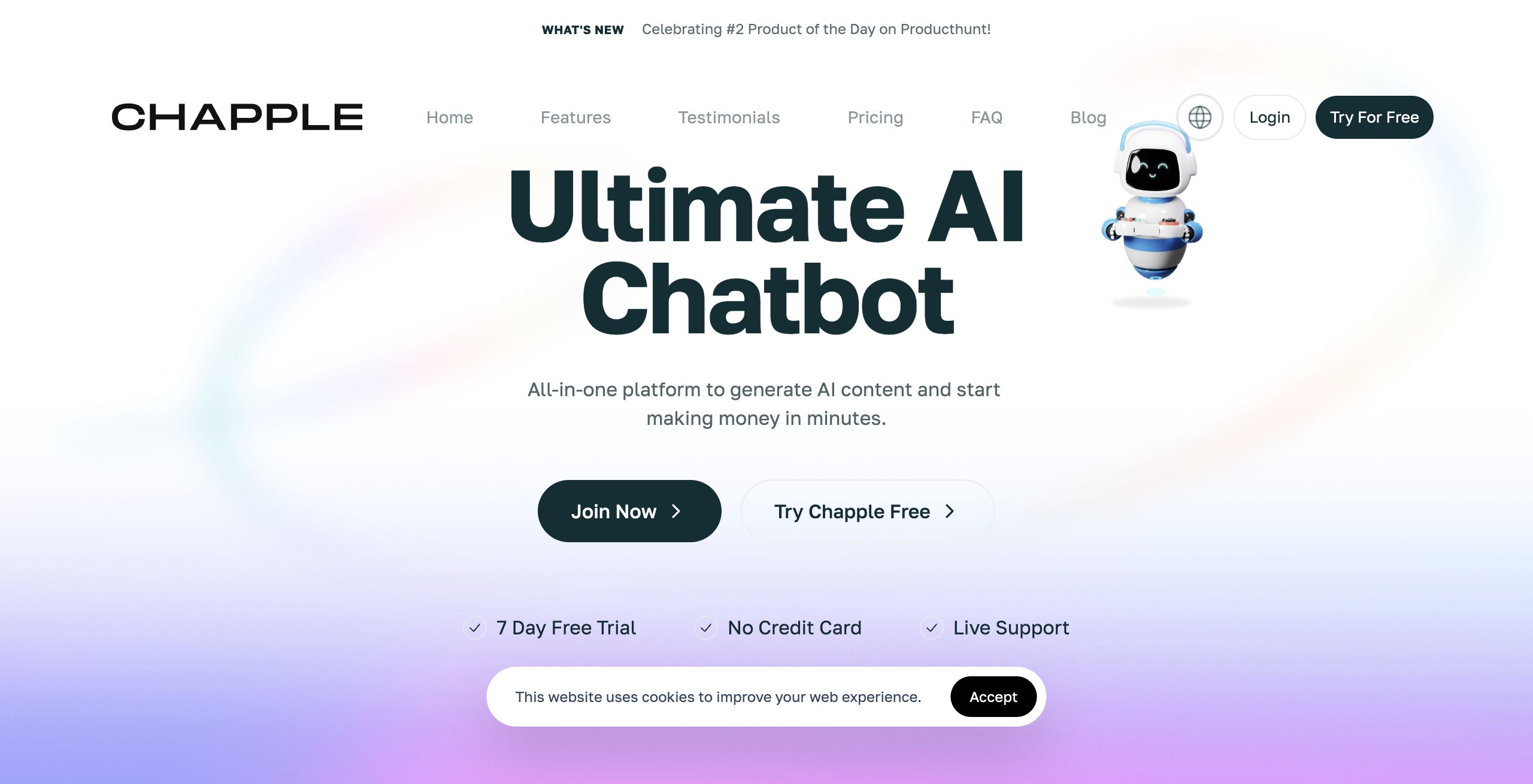 Chapple is an all-in-one AI-powered content generation platform designed to boost productivity and ignite creativity across various digital content domains. Built for entrepreneurs, writers, UX designers, content creators, and students, Chapple offers a suite of tools aimed at overcoming writer’s block and streamlining creative processes. Given its expanding presence and recognition—such as being celebrated as the #2 Product of the Day on Producthunt—Chapple is highly relevant in today's fast-paced digital content landscape.