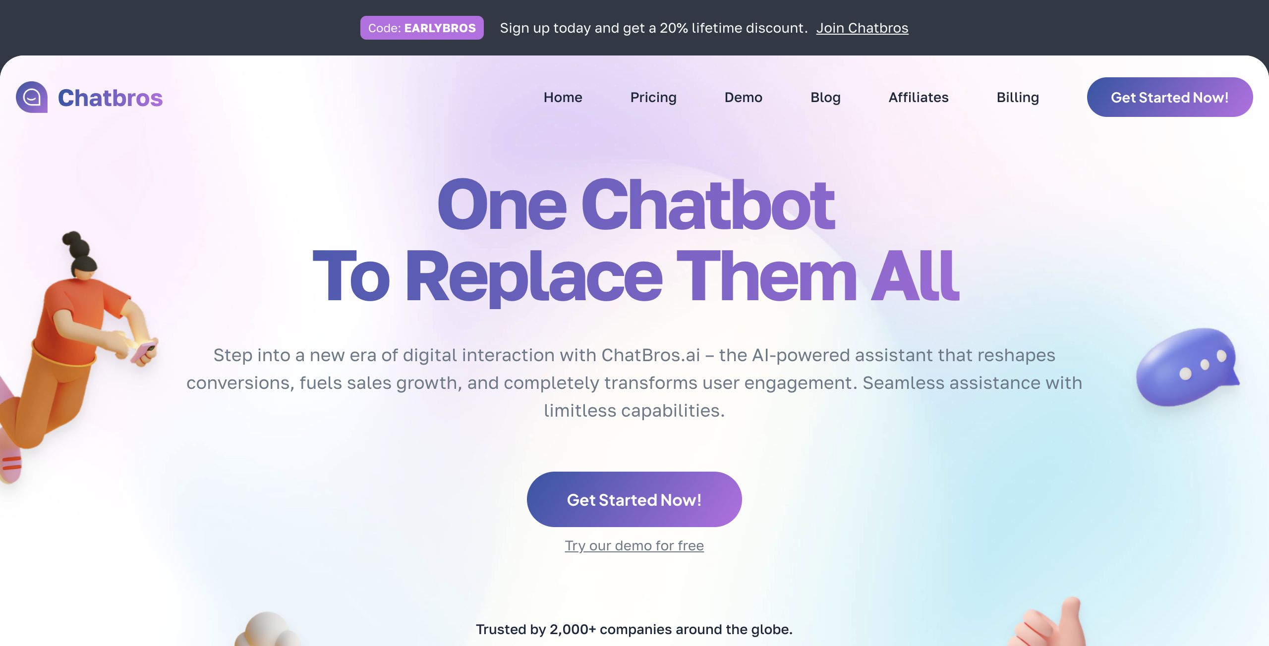 The pricing plans are competitively structured, making ChatBros a valuable investment for businesses seeking to boost conversions while also offering scalability as your business grows. In addition, a 20% lifetime discount is available for early sign-ups, adding further value for early adopters.