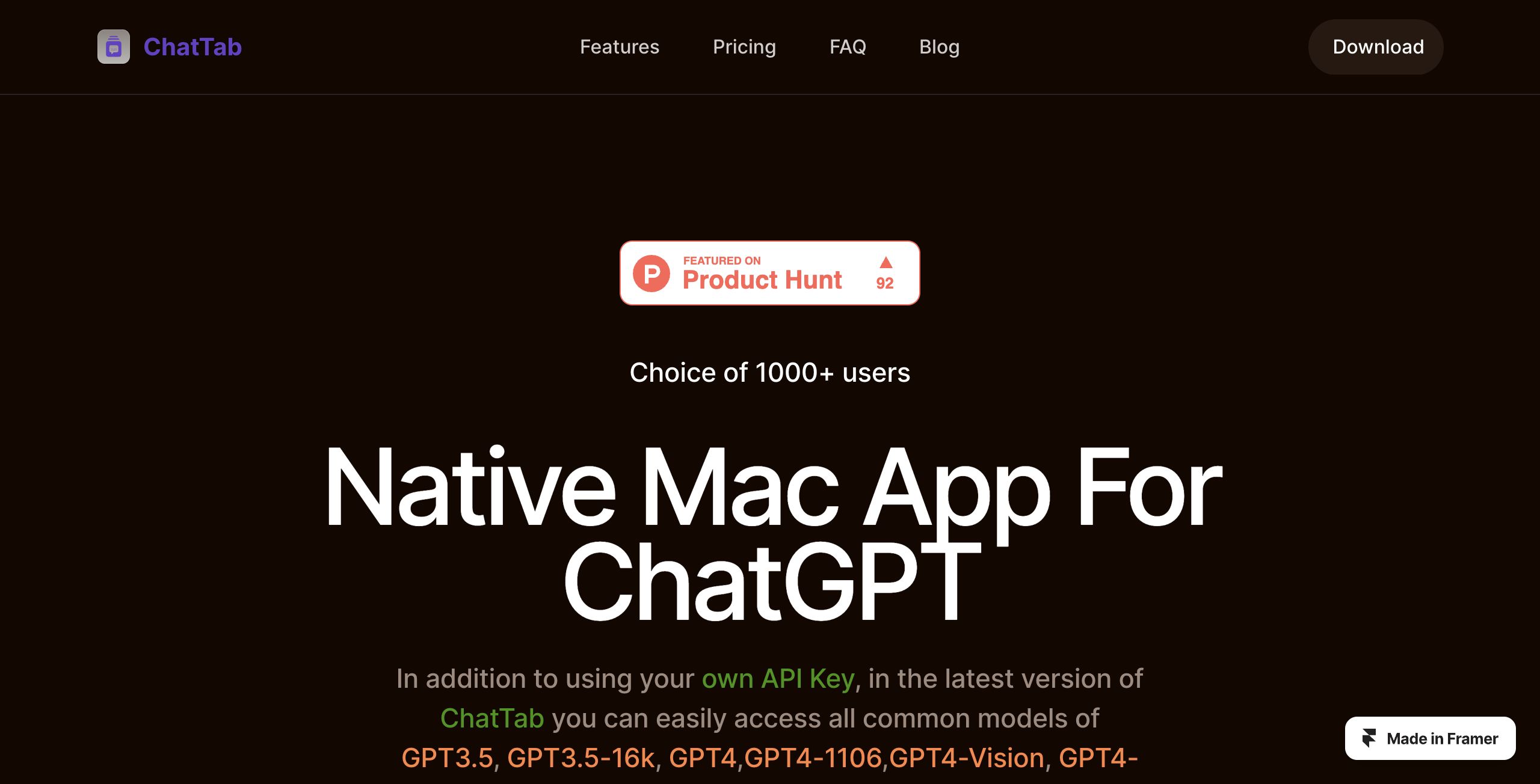 ChatTab is a compelling option for Mac users who want a dedicated, efficient, and secure interface for interacting with ChatGPT and other advanced AI models. Its native design ensures responsiveness and lower resource consumption, making it particularly attractive for users who value speed and performance. The range of pricing options—from a free starter plan to one-time purchase models—offers flexibility that accommodates both casual and professional needs.