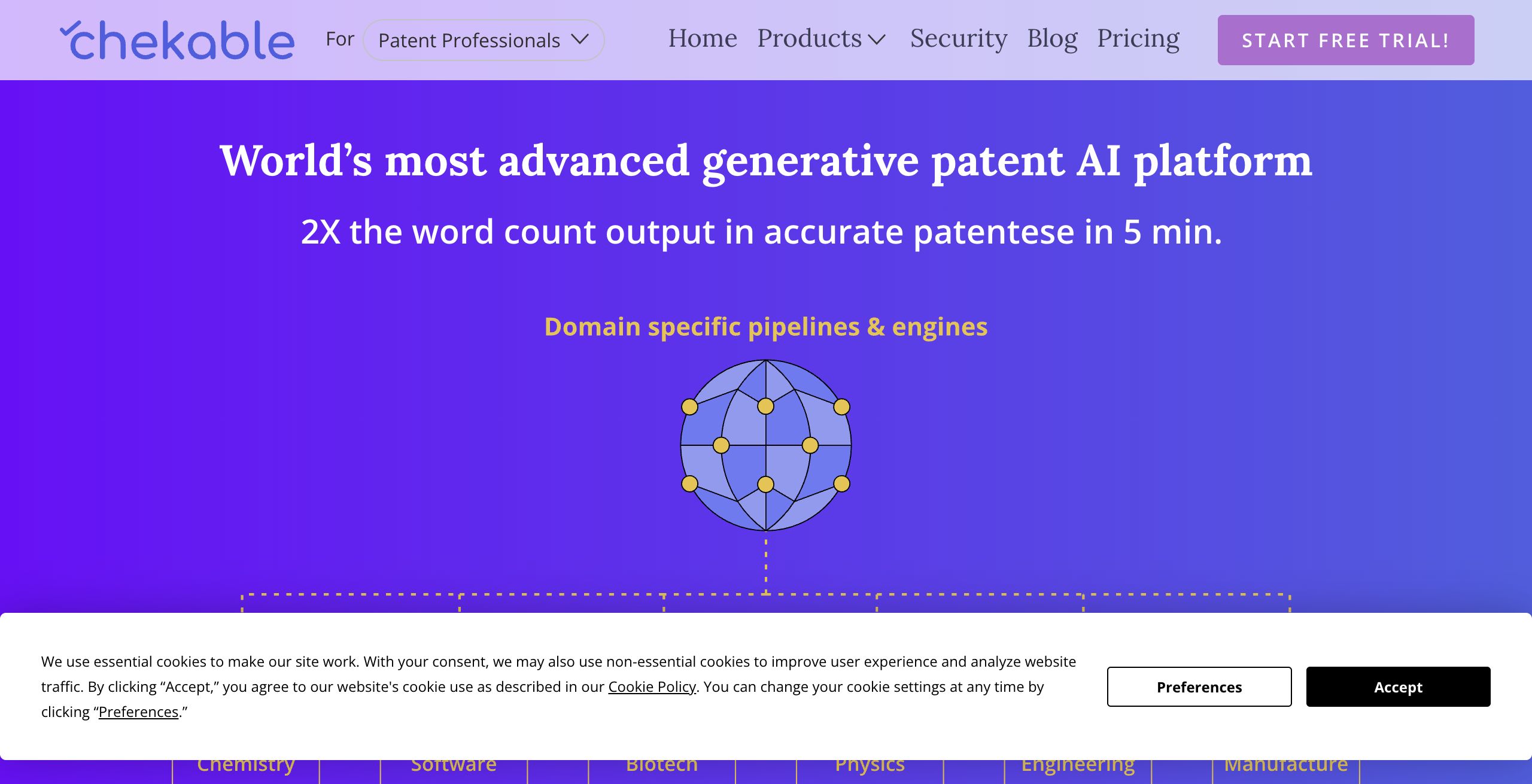 Chekable AI offers a robust suite of functionalities geared toward modernizing patent prosecution. Among its standout features are: