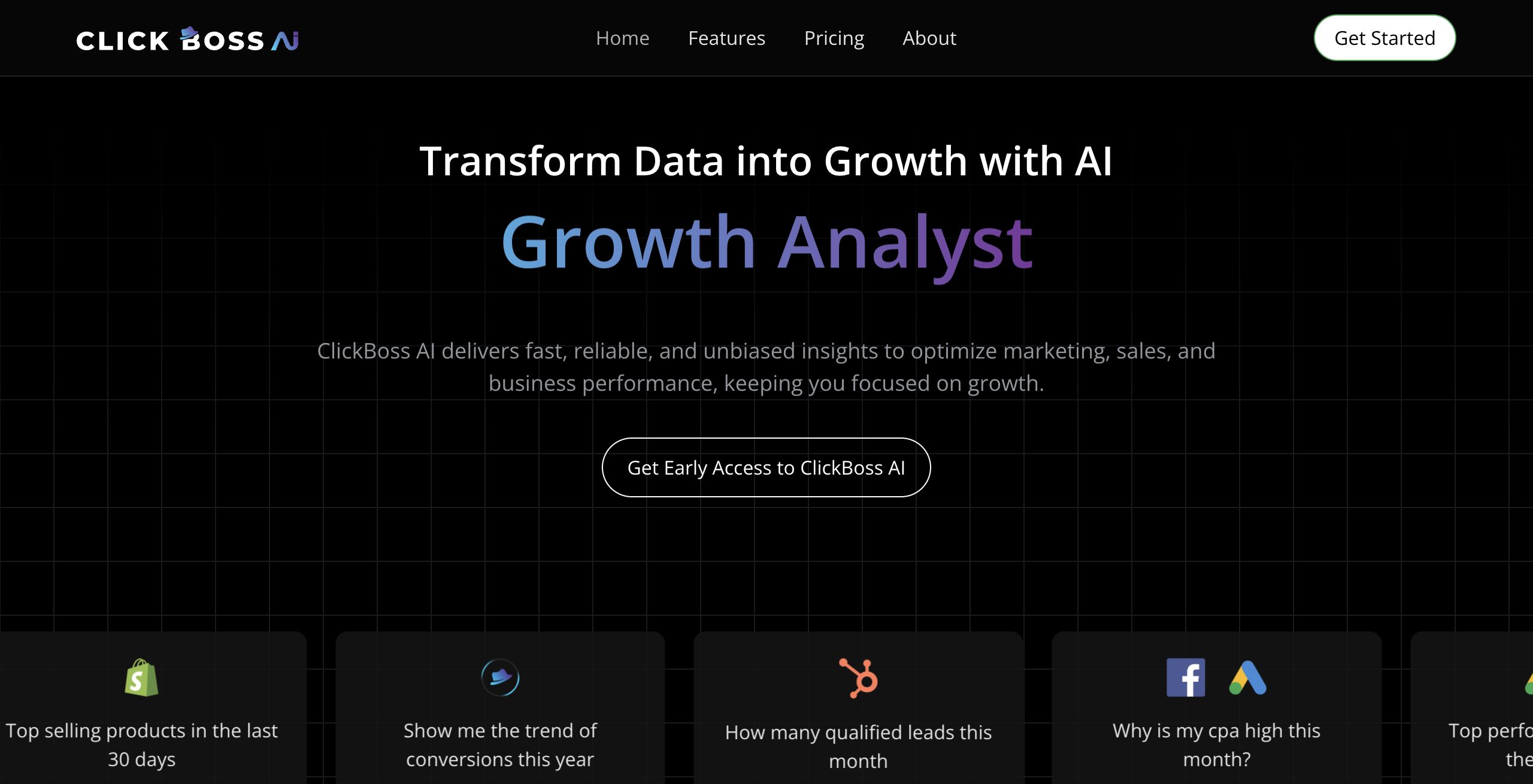 ClickBoss AI is an AI-powered analytics platform designed to help businesses of all sizes transform complex data into actionable insights. By providing real-time analytics, performance tracking, and smart alerts, ClickBoss AI is tailored for organizations looking to make data-driven decisions quickly and efficiently. This review is relevant for business owners, marketing, sales, and digital analysts who need fast, reliable, and unbiased insights to optimize performance and drive growth.