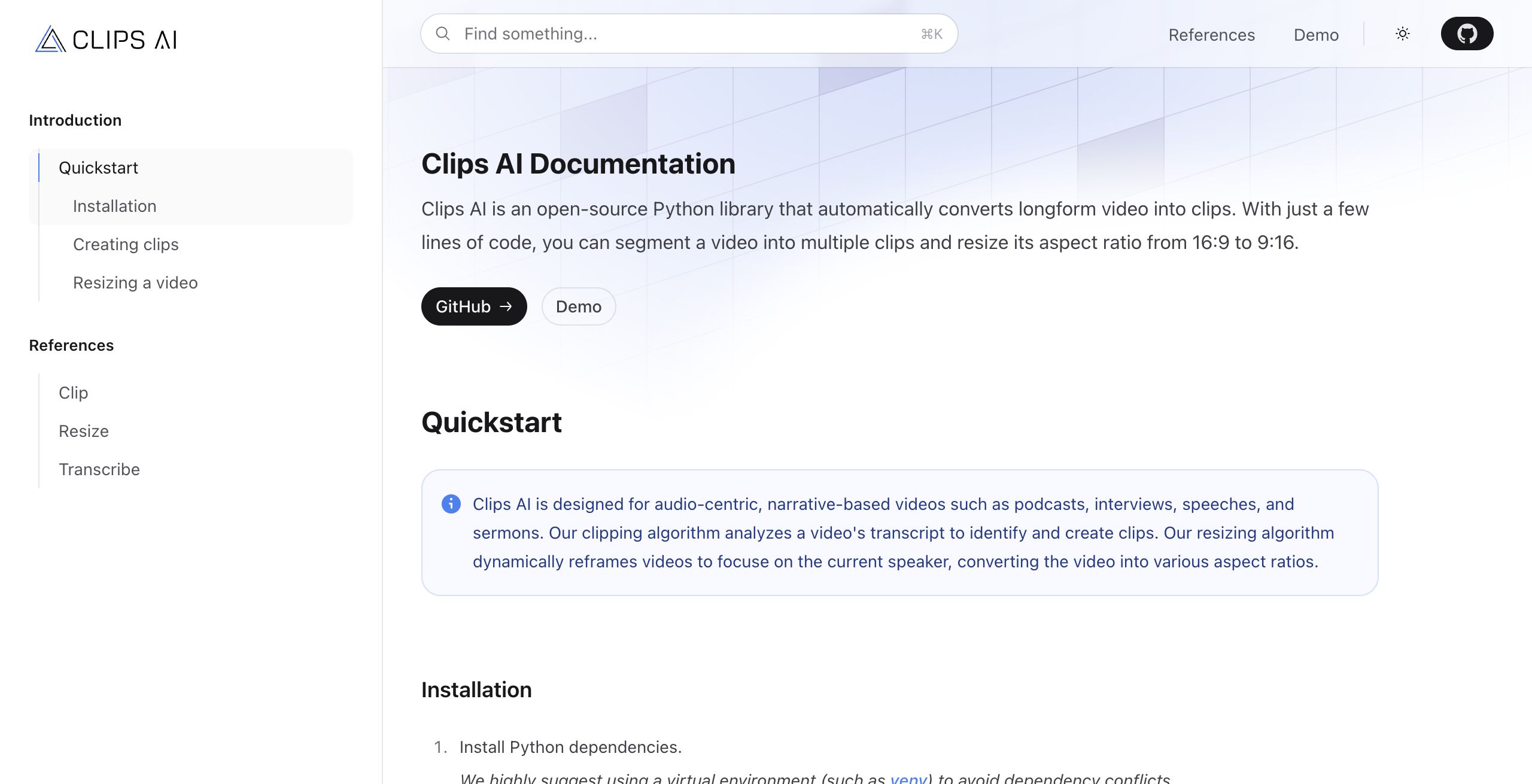 - Automated Content Segmentation: The tool utilizes an AI-powered clipping algorithm that analyzes video transcripts (using WhisperX) to automatically identify and create engaging clips from long-form content.