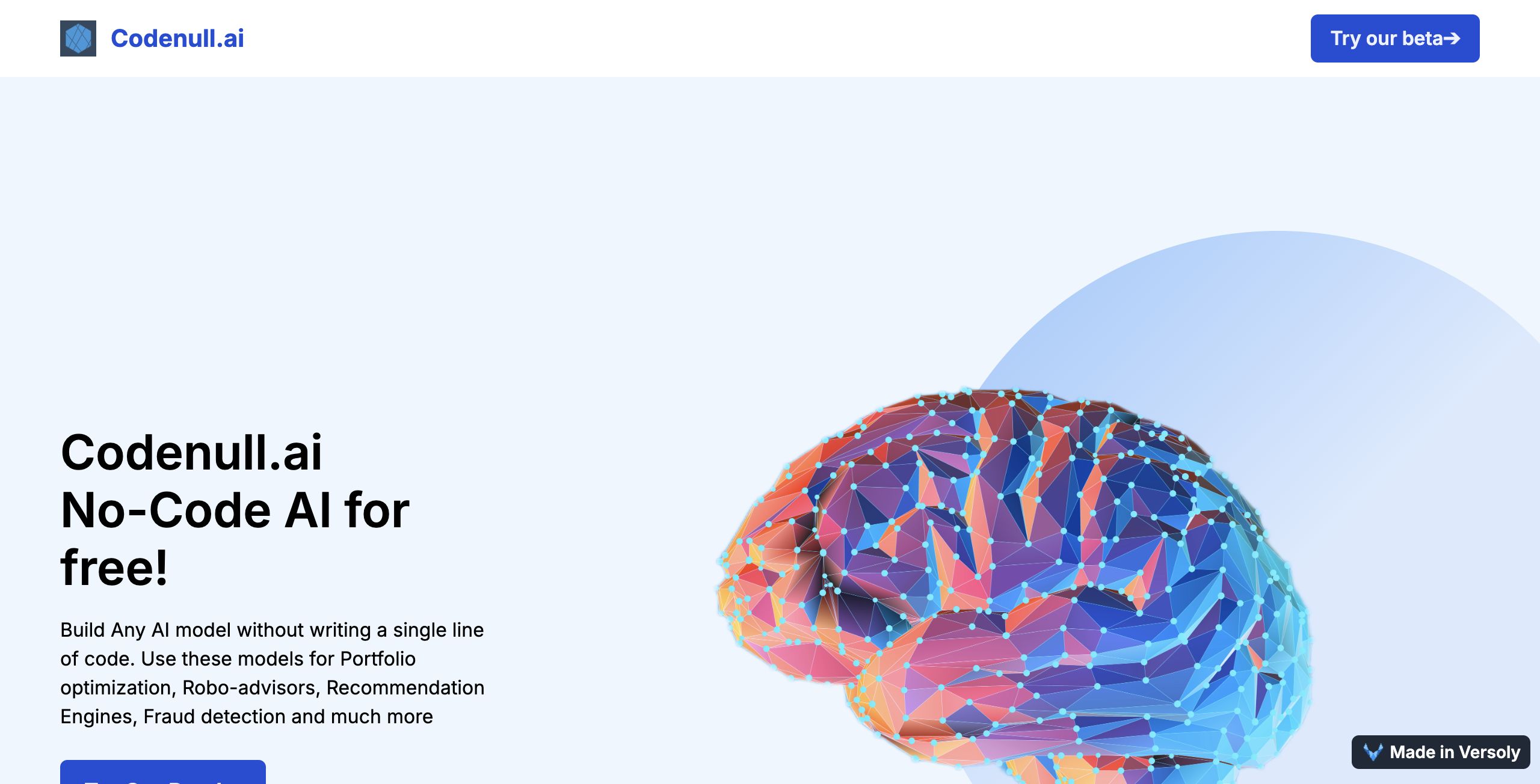 Codenull.ai is an innovative no-code platform designed to empower users to create sophisticated artificial intelligence models without any programming expertise. This user-friendly tool enables the development of a wide range of AI applications, including portfolio optimization, robo-advisory systems, recommendation engines, and fraud detection mechanisms. Users can also leverage the platform for predicting sales revenue, classifying medical data, estimating logistics costs, and exploring countless other AI-driven scenarios.