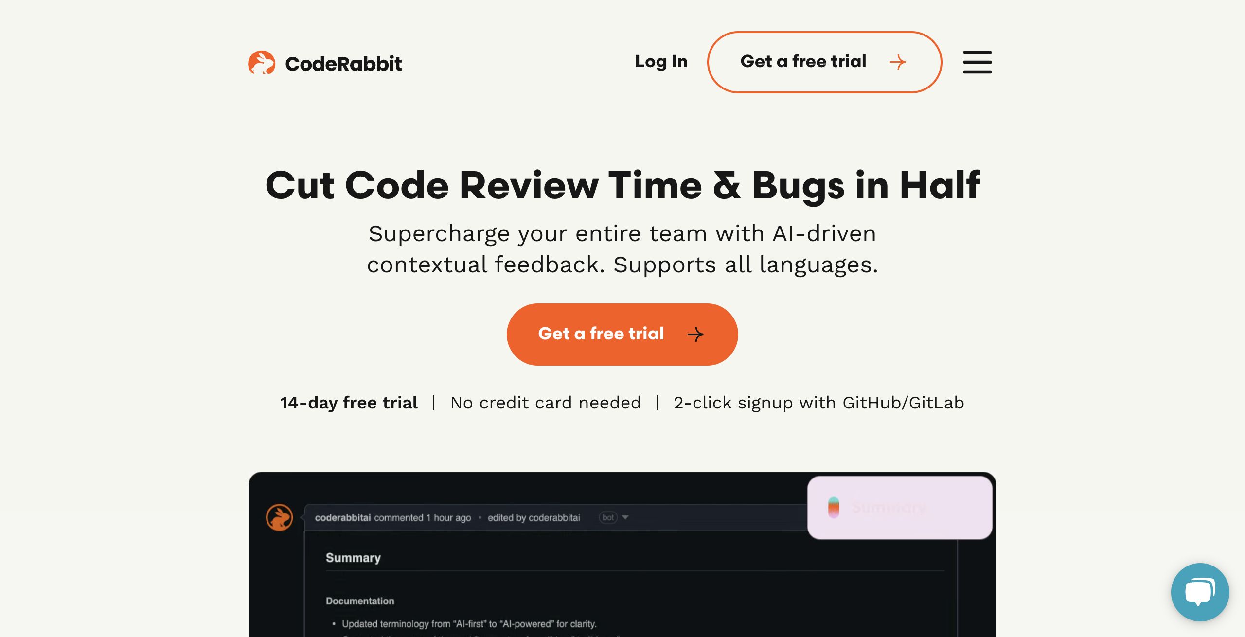 CodeRabbit offers a flexible pricing model highlighted by a 14-day free trial that requires no credit card, making it easy for teams to get started and assess its benefits. With seamless integration (e.g., 2-click signup with GitHub/GitLab) and a trial period that lets users explore its full potential, CodeRabbit delivers strong value by reducing manual review efforts and enhancing code quality, positioning itself competitively against traditional review processes and other AI-based tools.