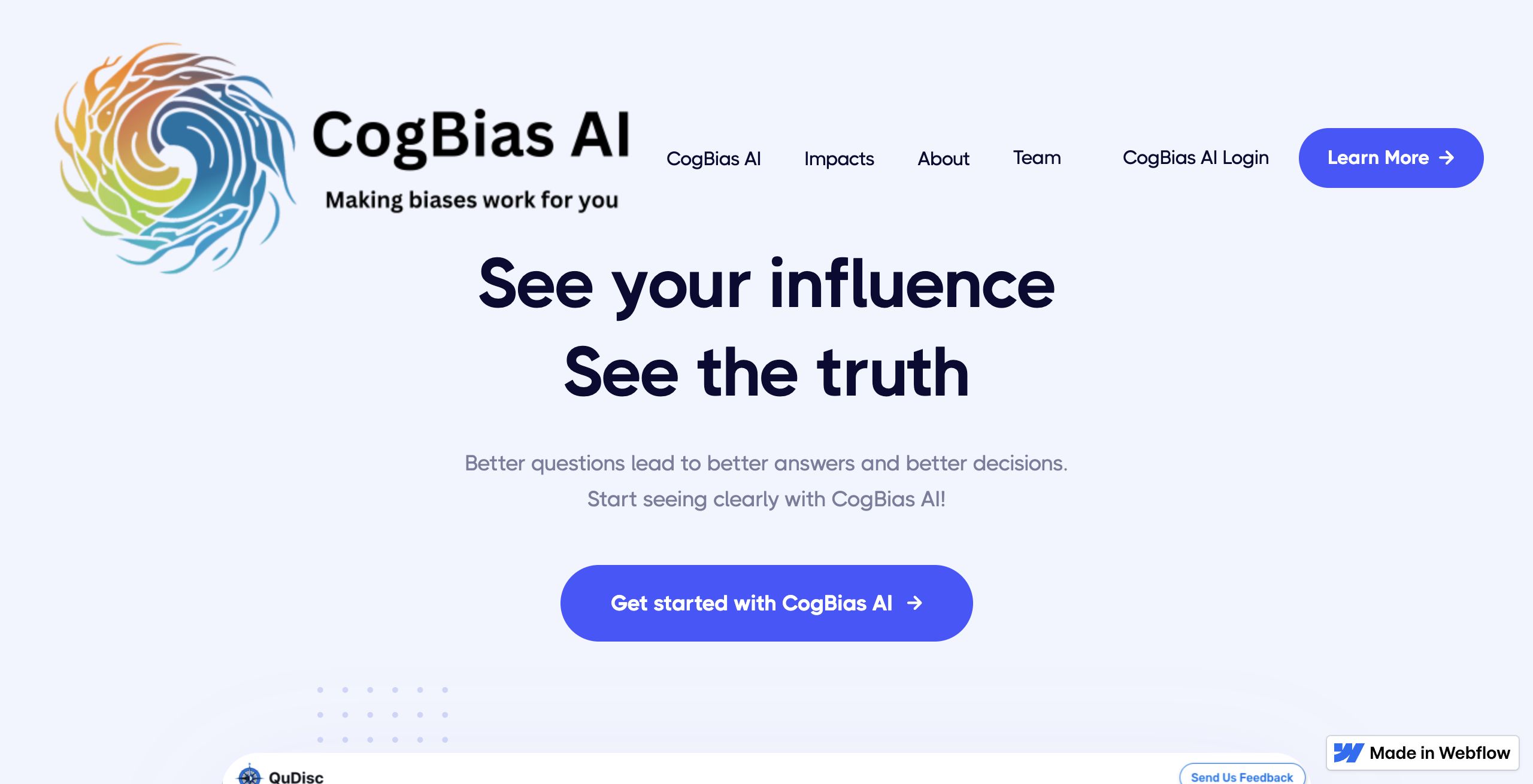QuDisc, also referenced on its homepage as CogBias AI, is an AI-powered platform designed to enhance customer discovery and market research by minimizing cognitive biases. The tool is tailored for startups, entrepreneurs, and product managers who understand the importance of asking the right questions and gathering unbiased insights to drive informed decisions. In todayβs competitive market, where even minor biases can lead to strategic missteps, QuDisc/CogBias AI presents a timely solution for achieving clearer, data-driven outcomes.