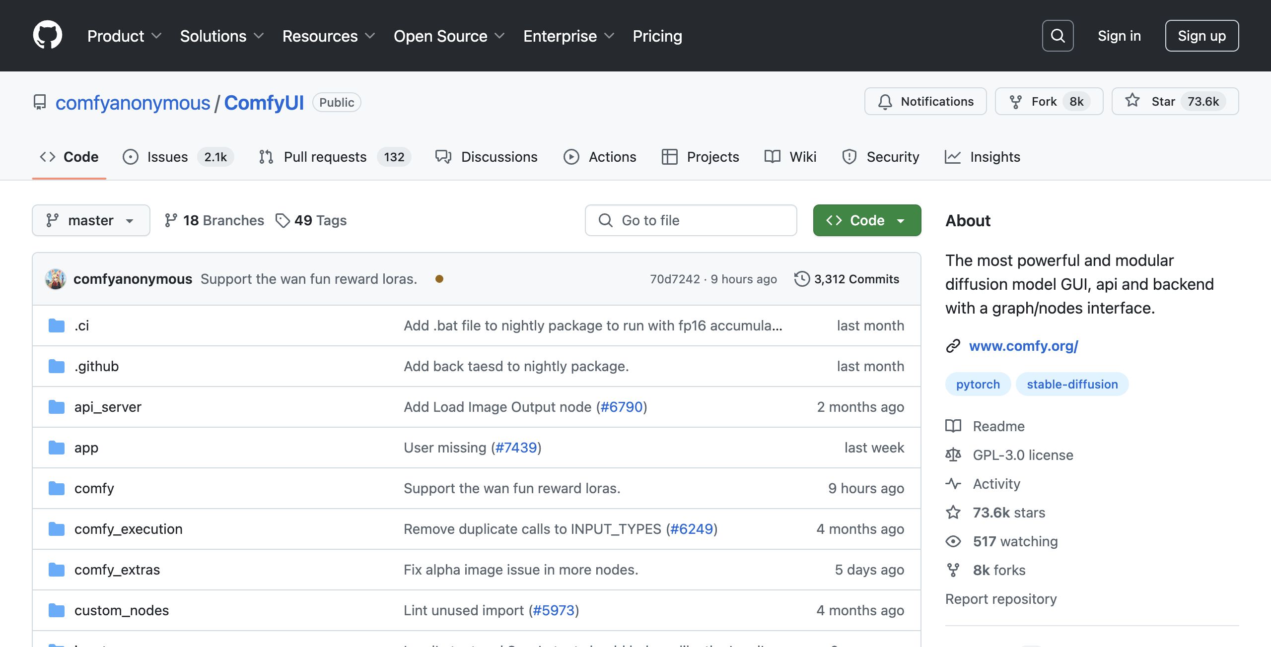 - Graph/Nodes Interface: Offers a flowchart-style design, enabling users to craft and execute complex diffusion pipelines without needing to write code.