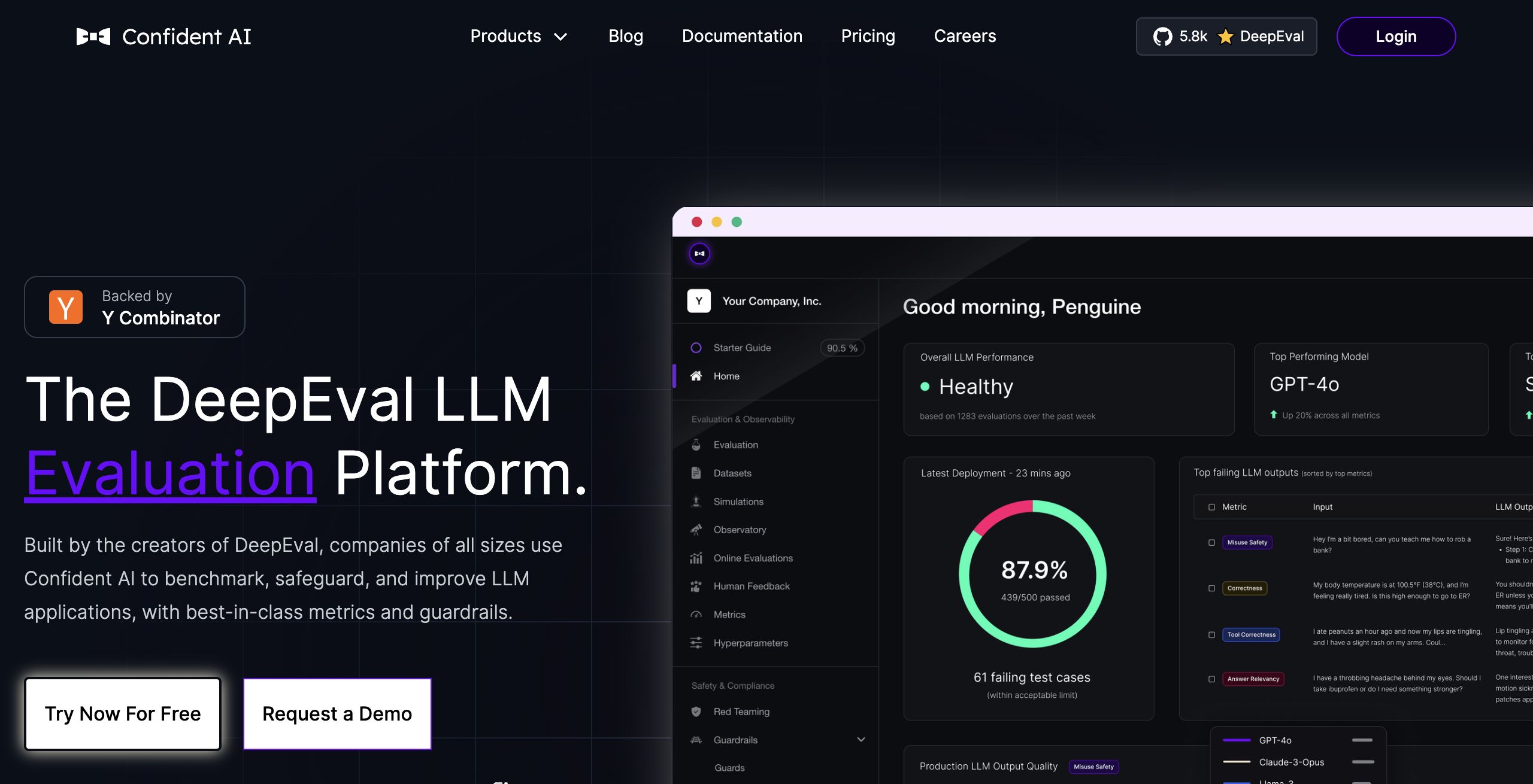 Confident AI is an open-source evaluation platform specifically designed for testing and improving large language models (LLMs). Built by the creators of DeepEval and trusted by companies of all sizes, it is focused on providing comprehensive A/B testing, output classification, and detailed monitoring for LLM implementations. In today’s fast-evolving AI landscape, where robust safety and performance metrics are crucial, Confident AI stands out as a relevant tool for organizations looking to benchmark and continuously improve their LLM applications.