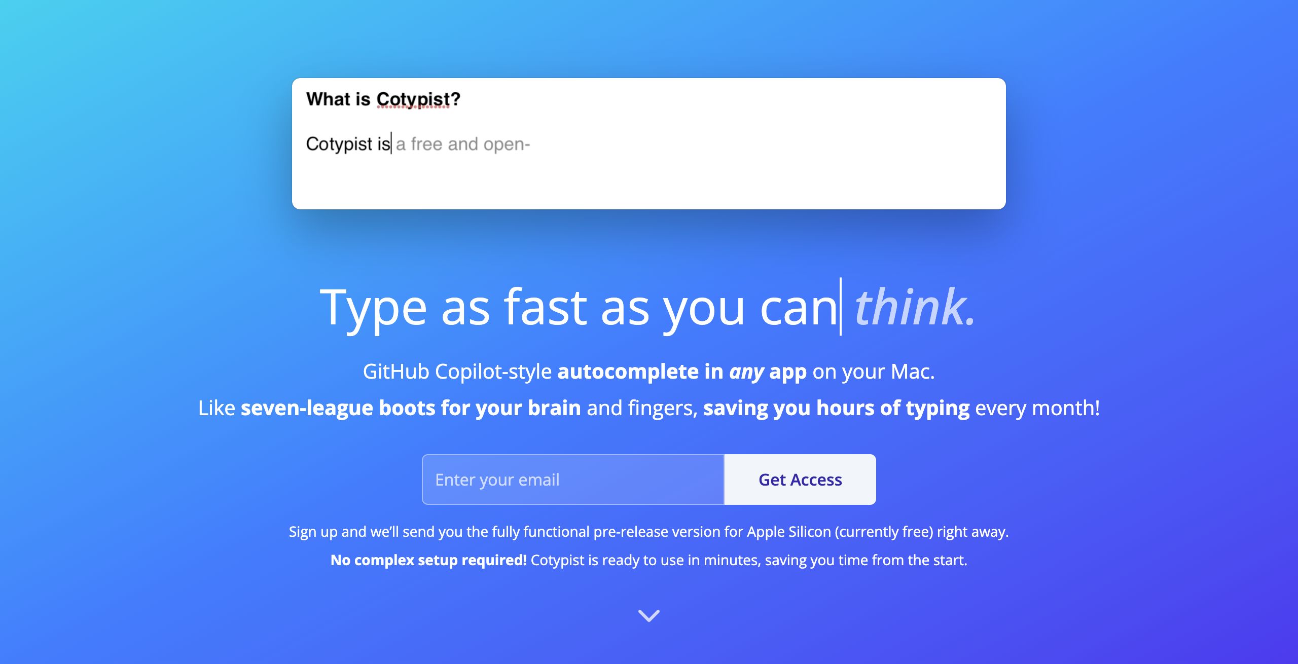 Cotypist is a compelling tool for anyone looking to enhance their writing productivity, particularly those within the Mac ecosystem. Its clever integration and local data processing make it an excellent choice for professionals, students, and content creators who value both efficiency and privacy. While the pre-release version comes with some limitations and is restricted to Apple Silicon users, the overall promise of a faster, more intuitive writing experience makes it worth trying. If you are a Mac user in need of a handy writing assistant that still keeps you in control of your content, Cotypist could very well be your next essential tool.