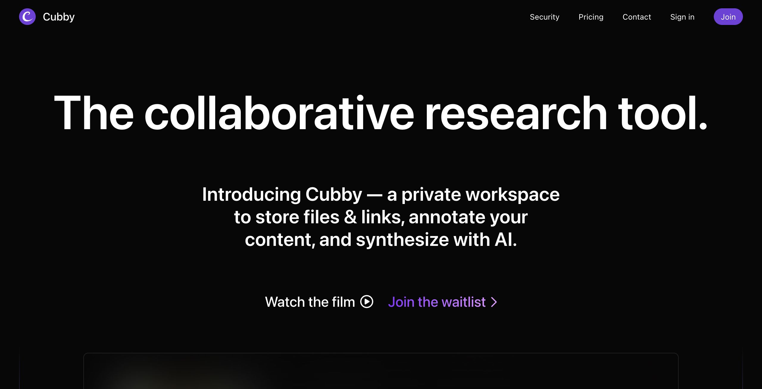 Cubby is a collaborative research tool designed to help researchers, students, and professionals organize and annotate content for efficient research collaboration. The platform serves as a private workspace where users can store various content types, including articles, PDFs, videos, and audio files, either collected from the internet or uploaded from their devices. With its emphasis on synthesizing research through AI-powered features, Cubby is particularly relevant for anyone looking to streamline their workflow and enhance team collaboration in information-heavy projects.