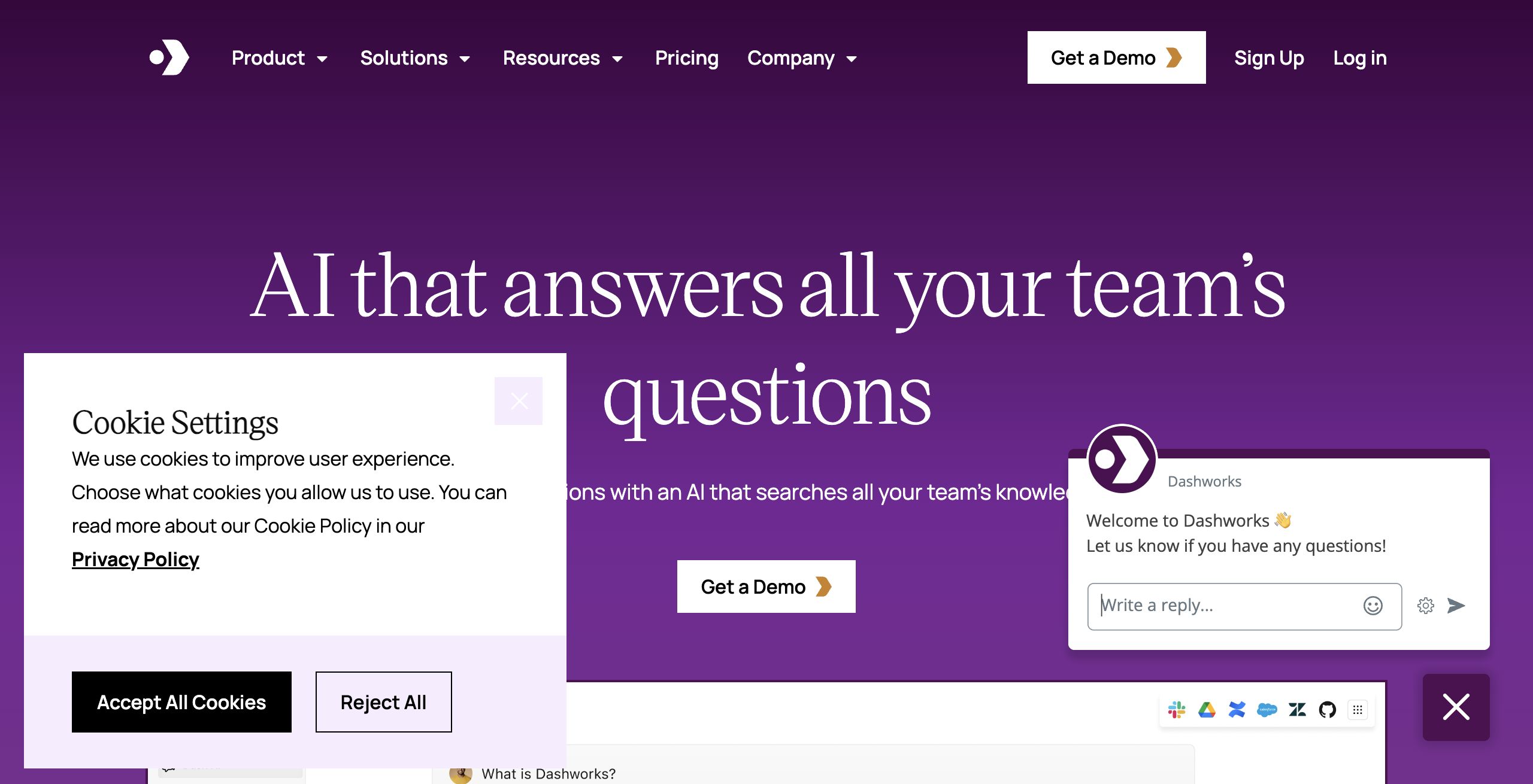 Dashworks is an AI Knowledge Assistant designed to streamline access to a unified organizational knowledge base. Aimed at teams across sales, engineering, marketing, customer support, and more, Dashworks addresses the need for quick, reliable, and real-time access to information spread across various company applications, documents, and communication channels. In today’s information-driven environment, where teams continually battle with data silos and redundant queries, Dashworks offers a solution that not only accelerates response times but also enhances productivity and decision-making.