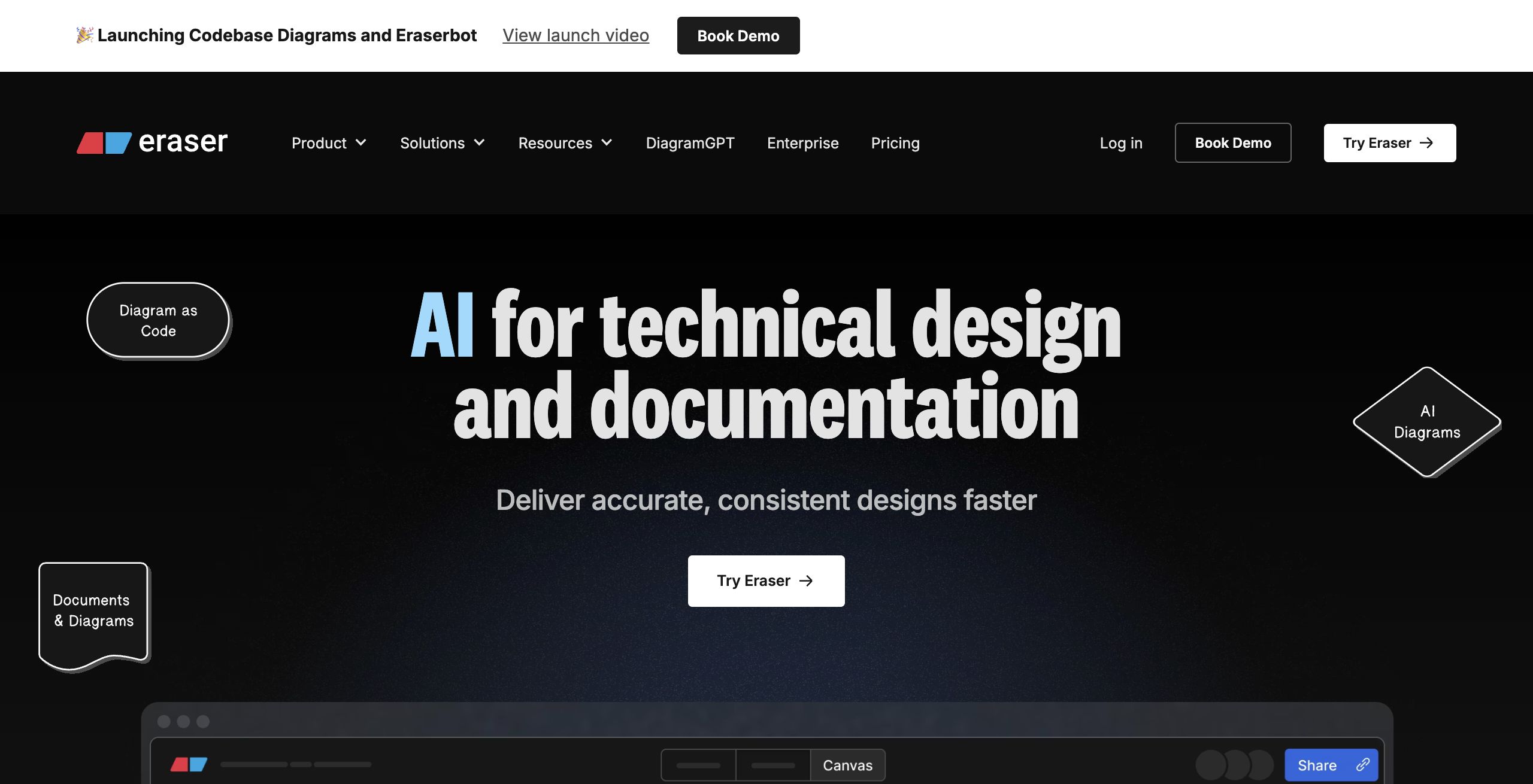 - AI-Powered Diagram Generation: The platform leverages AI technology (Eraserbot/DiagramGPT) to generate diagrams, allowing teams to save valuable time on complex visualizations.