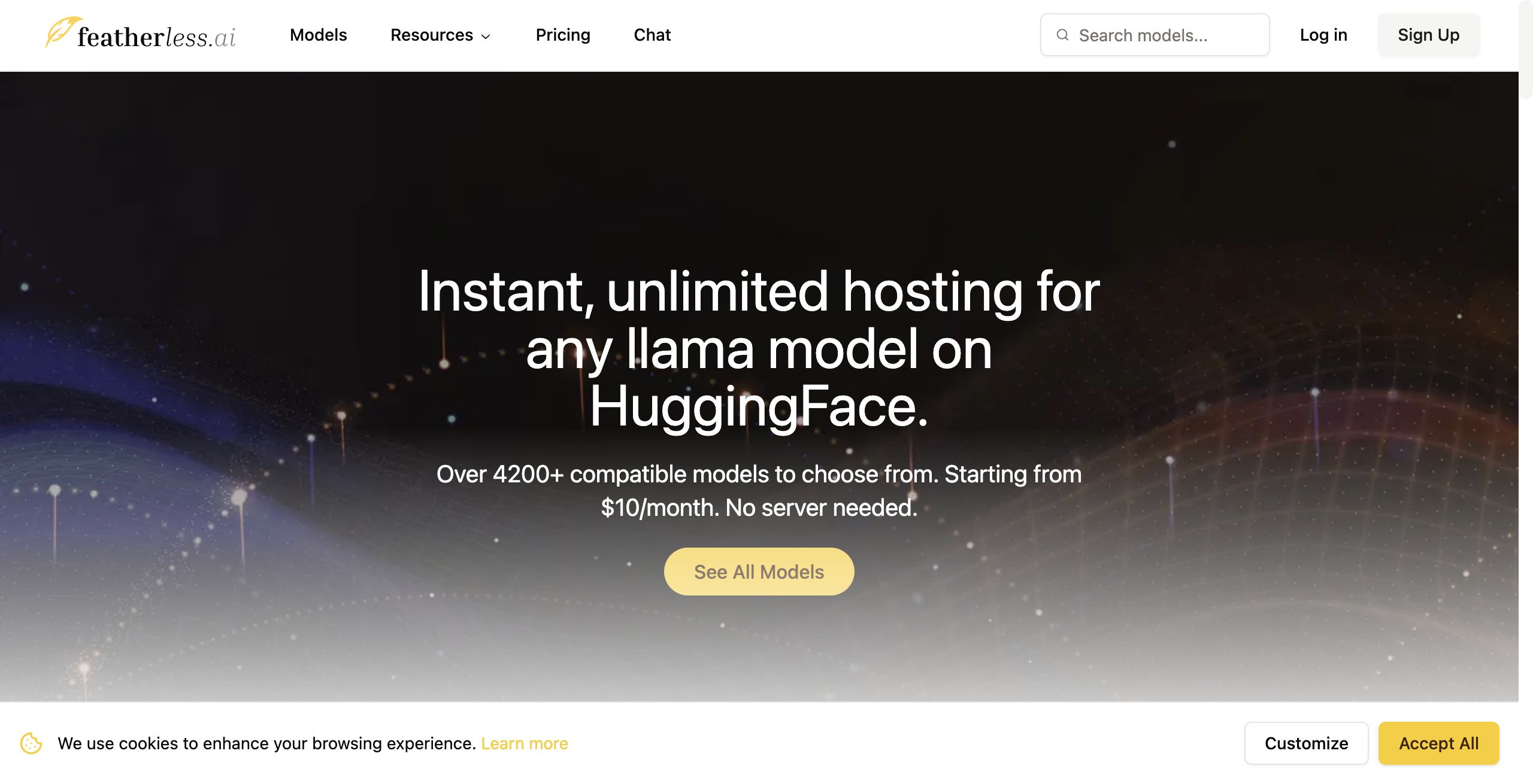 - Feather Basic: For models up to 15B in size, this plan is priced at $10 USD/month. It includes personal use with a limit of 2 concurrent requests, along with secure and anonymous inference.