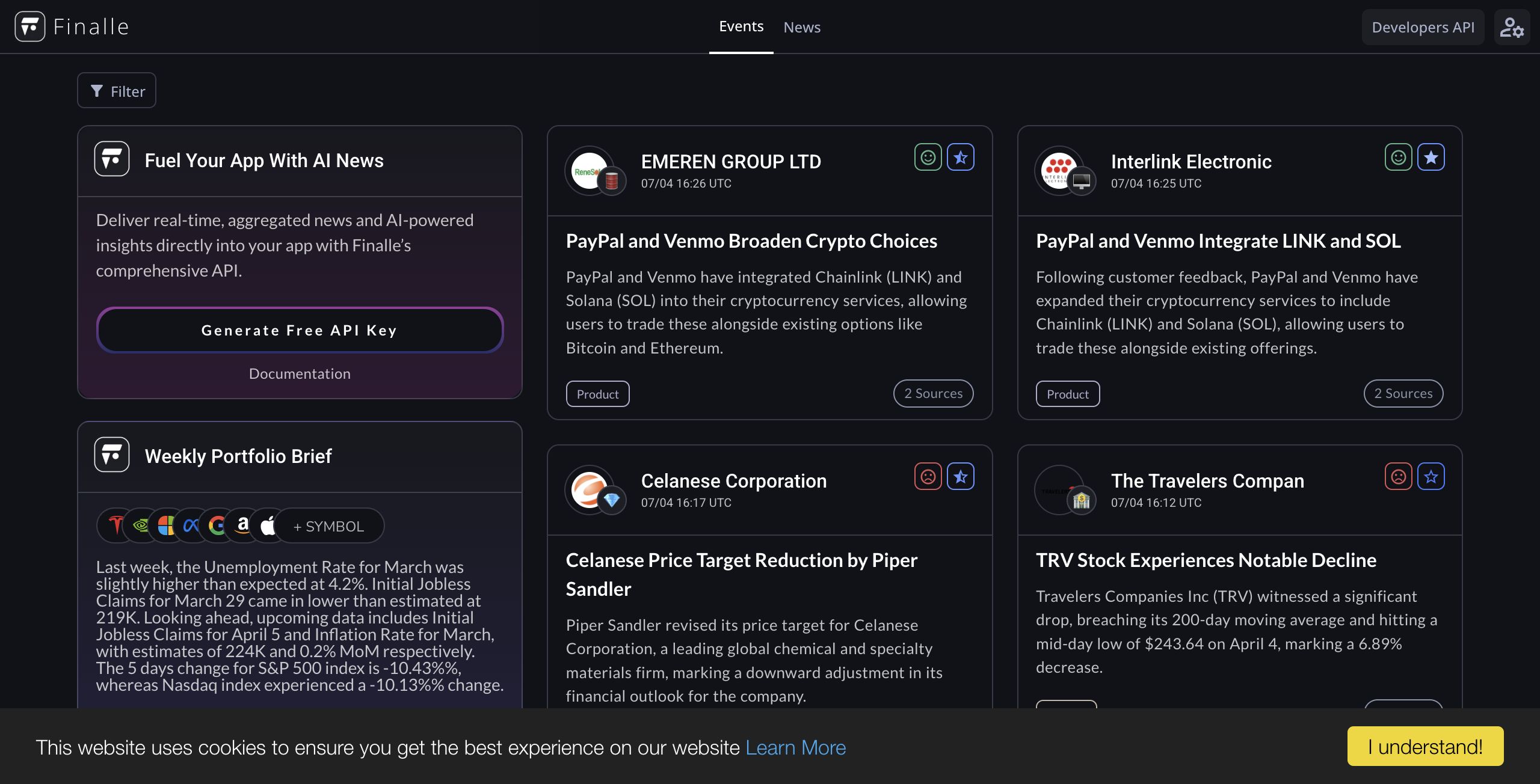 - API Integration: With a robust API, including a free API key option, developers can easily integrate real-time financial intelligence into their own applications.