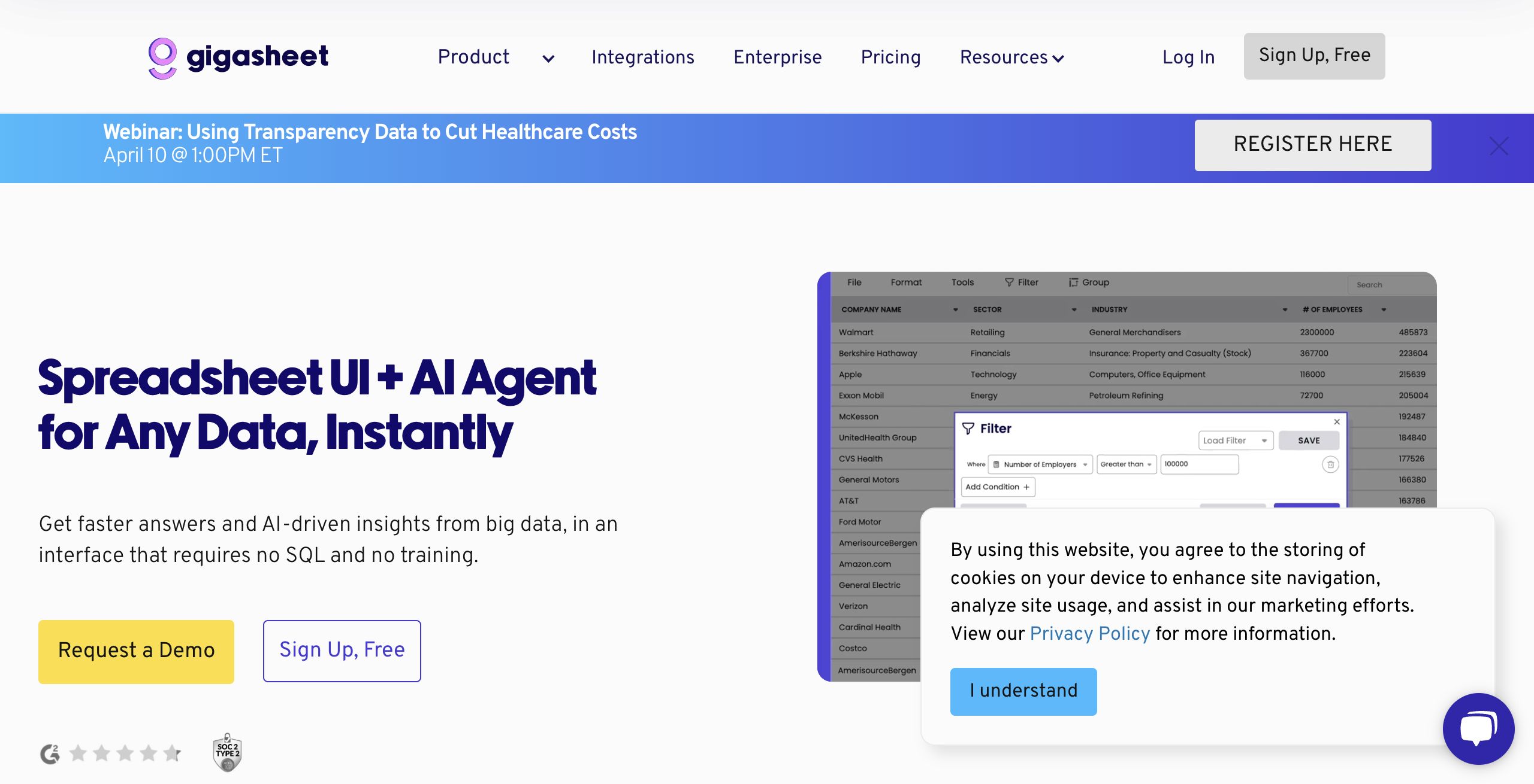 Gigasheet is a big data spreadsheet tool designed to handle and analyze massive datasets—up to 1 billion rows in a single sheet. It is geared toward professionals and teams in sectors such as sales, marketing, healthcare, and cybersecurity who need to derive meaningful insights from large volumes of data without the need for extensive coding, SQL knowledge, or steep learning curves. In today’s data-driven environment, tools that simplify and streamline analytics are in high demand, making Gigasheet a relevant and intriguing option for many organizations.