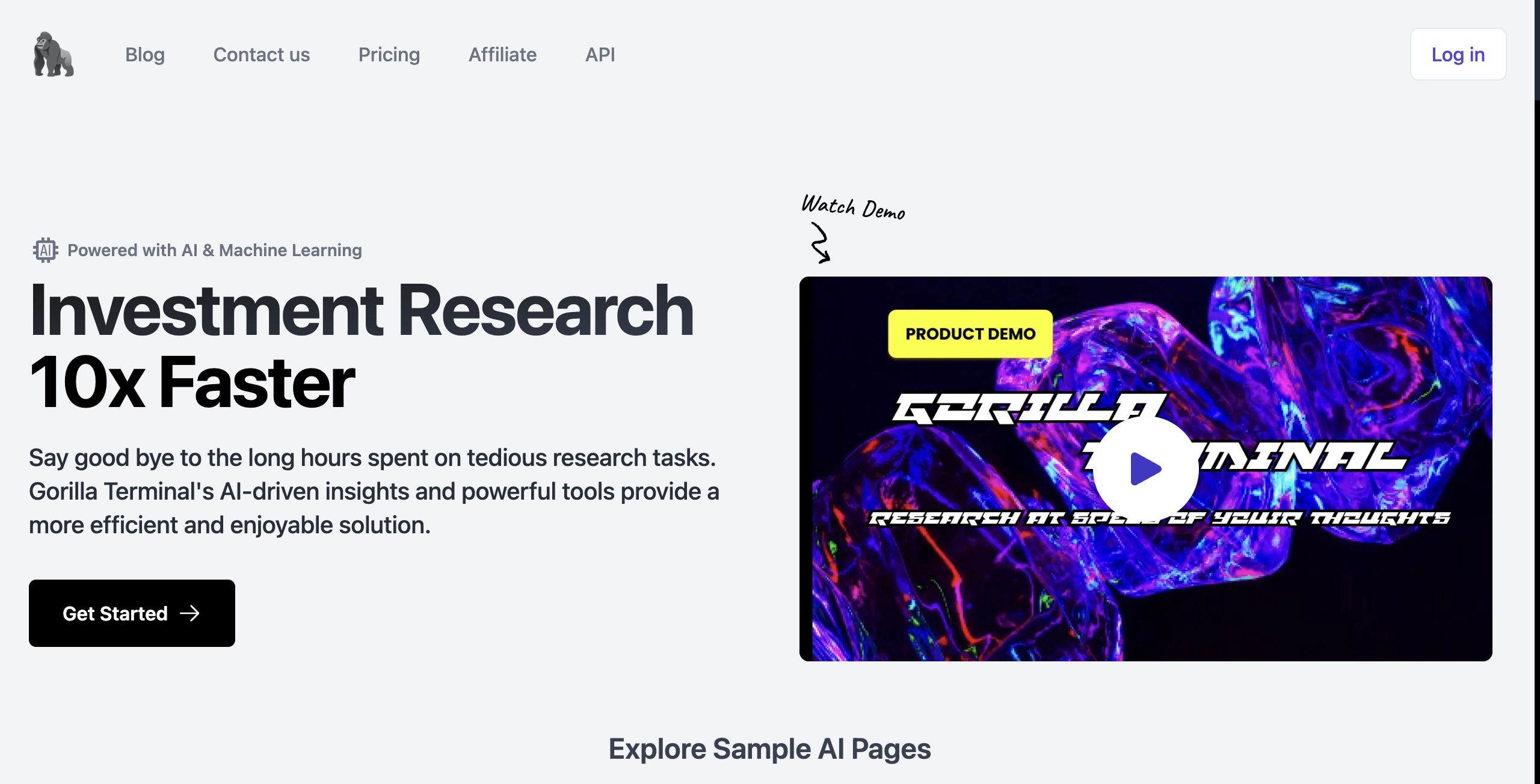 Gorilla Terminal is an AI-driven platform designed for investment research and analysis. The tool caters primarily to forward-thinking investors, portfolio managers, and research analysts who are keen on leveraging advanced data insights to streamline their investment research. Given the increasing complexity of financial markets and the need for faster, more intuitive data analysis, Gorilla Terminal offers a compelling proposition by addressing the tedious aspects of traditional research methods.