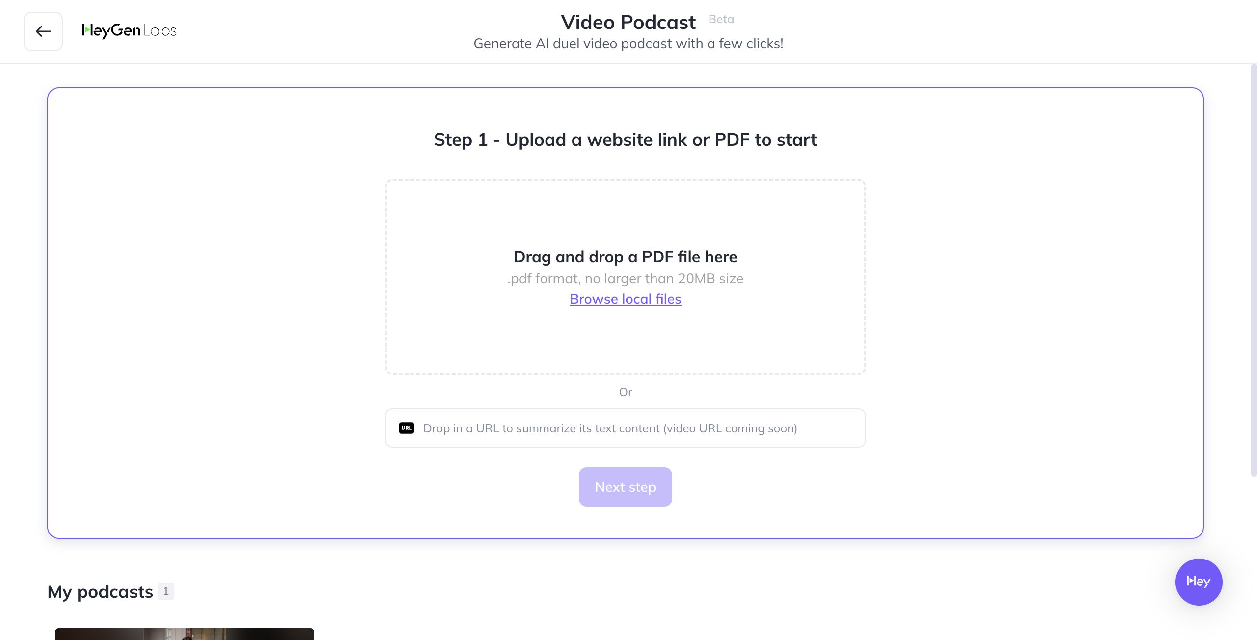 Open 'HeyGen Podcast' Website