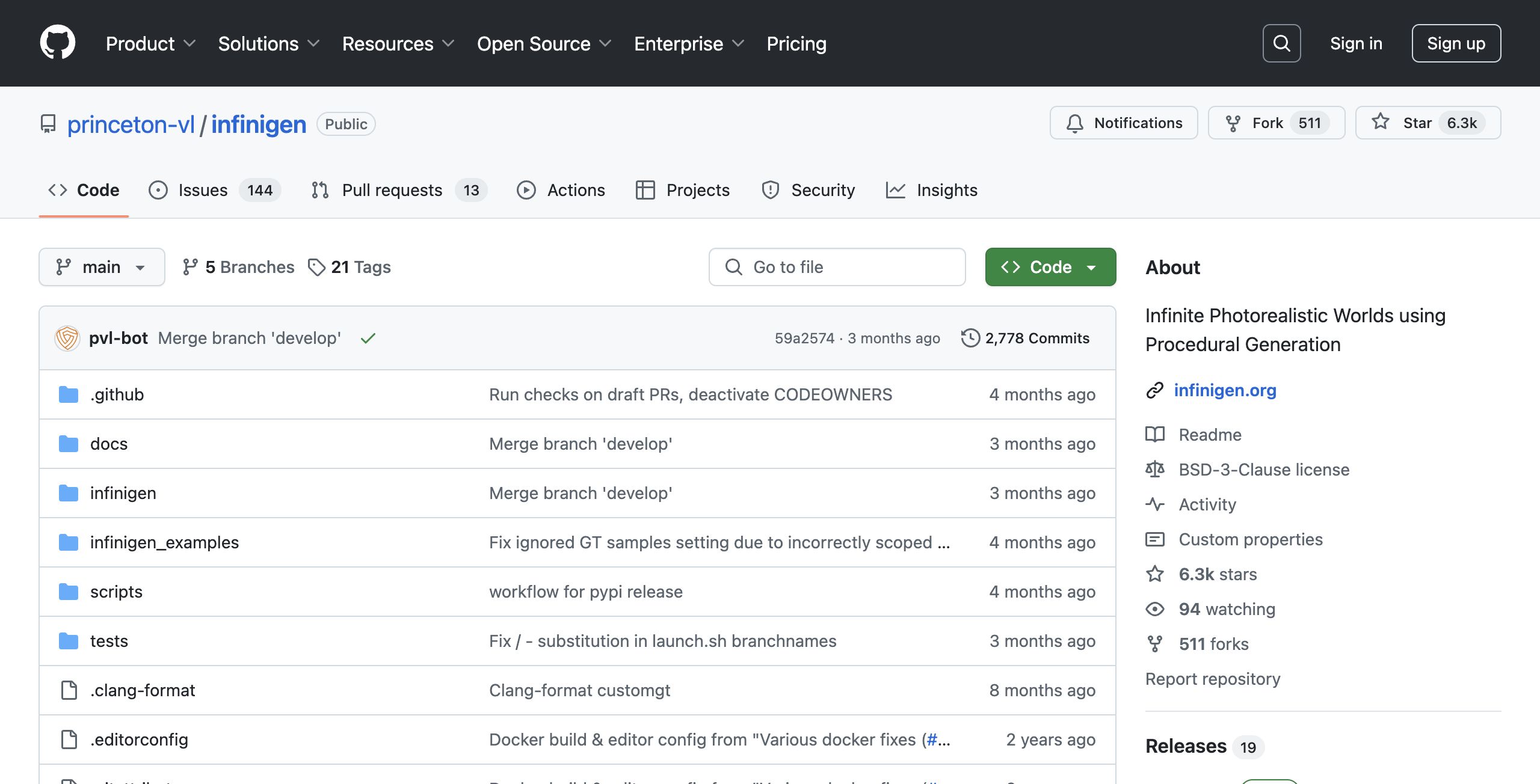 Infinigen is an open-source procedural generation tool designed to create photorealistic infinite worlds. Developed by the Princeton Vision & Learning Lab, its primary focus is on generating diverse, high-quality 3D scenes optimized for computer vision research. The tool leverages randomized mathematical rules to produce unlimited variations of shapes, materials, and details, making it an innovative solution both for researchers who need realistic training data and for developers interested in exploring procedural content generation.