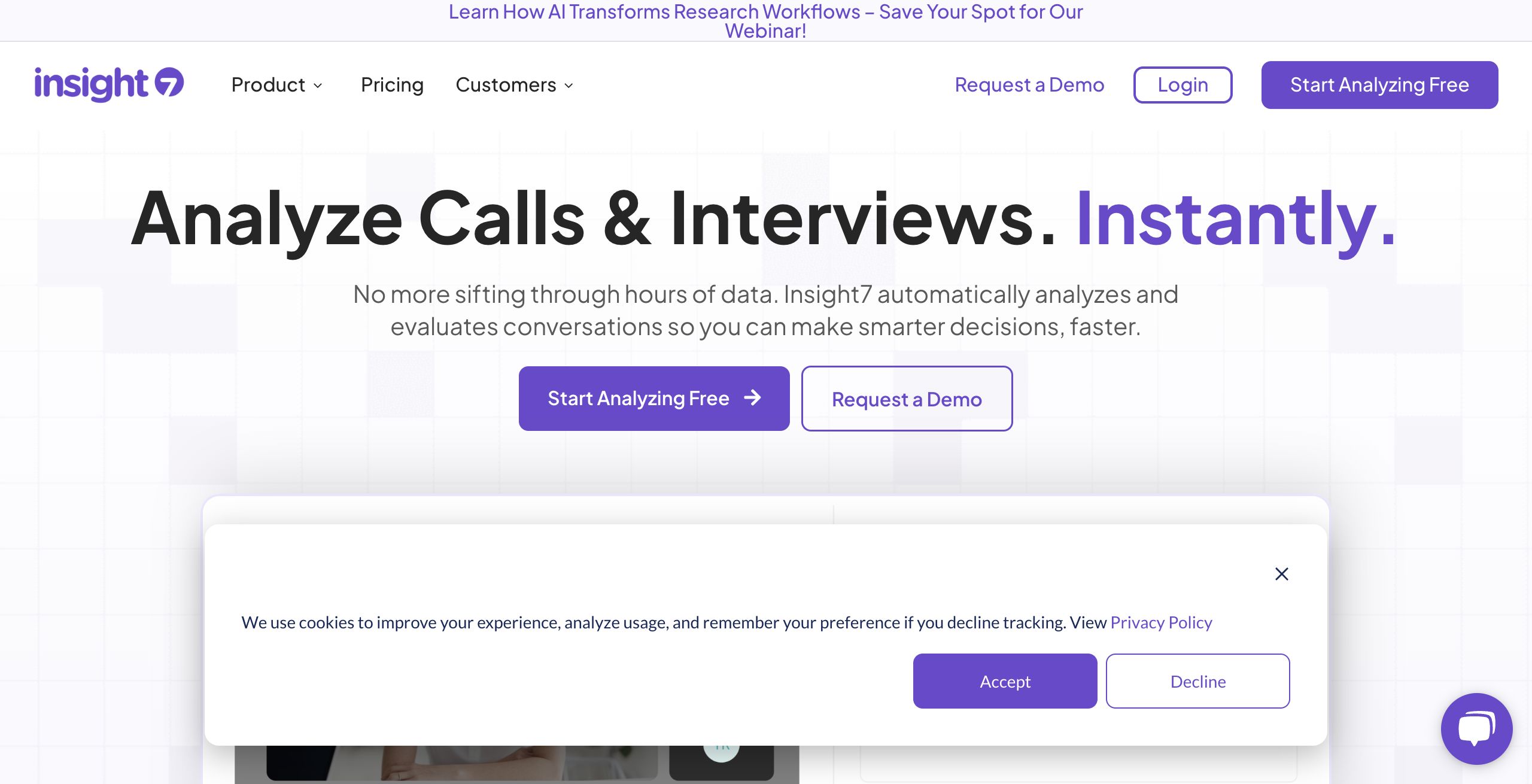- Instant Insights: Automatically extract key themes, quotes, and highlight reels from conversations, removing the need for time-consuming manual review.