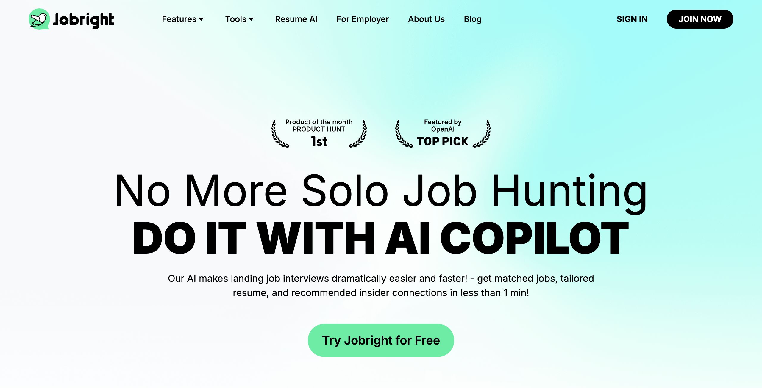 - AI Copilot: Assists with both job matching and resume tailoring, enabling users to find jobs and prepare applications more efficiently.