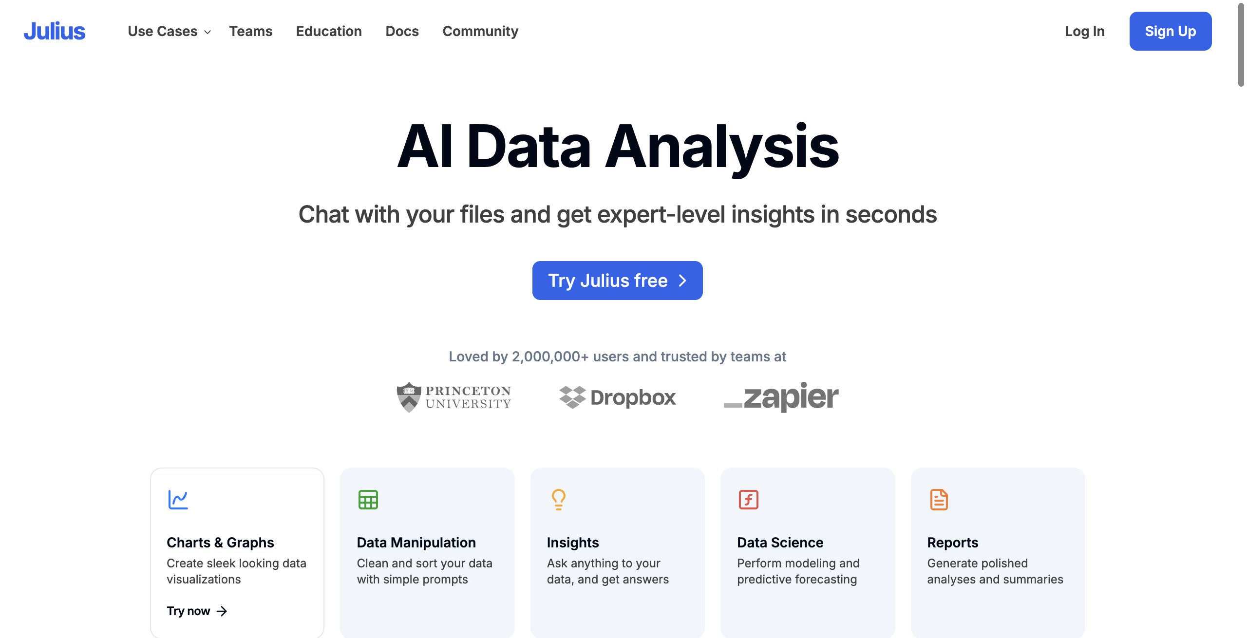Julius is an AI-powered data analyst chatbot designed to help users quickly understand, analyze, and visualize their data. It caters to a wide range of users—from individual data enthusiasts and business professionals to teams and academic researchers. In today’s data-driven environment, having a tool that simplifies complex data analysis and visualization is invaluable, which is why Julius is worth a closer look.