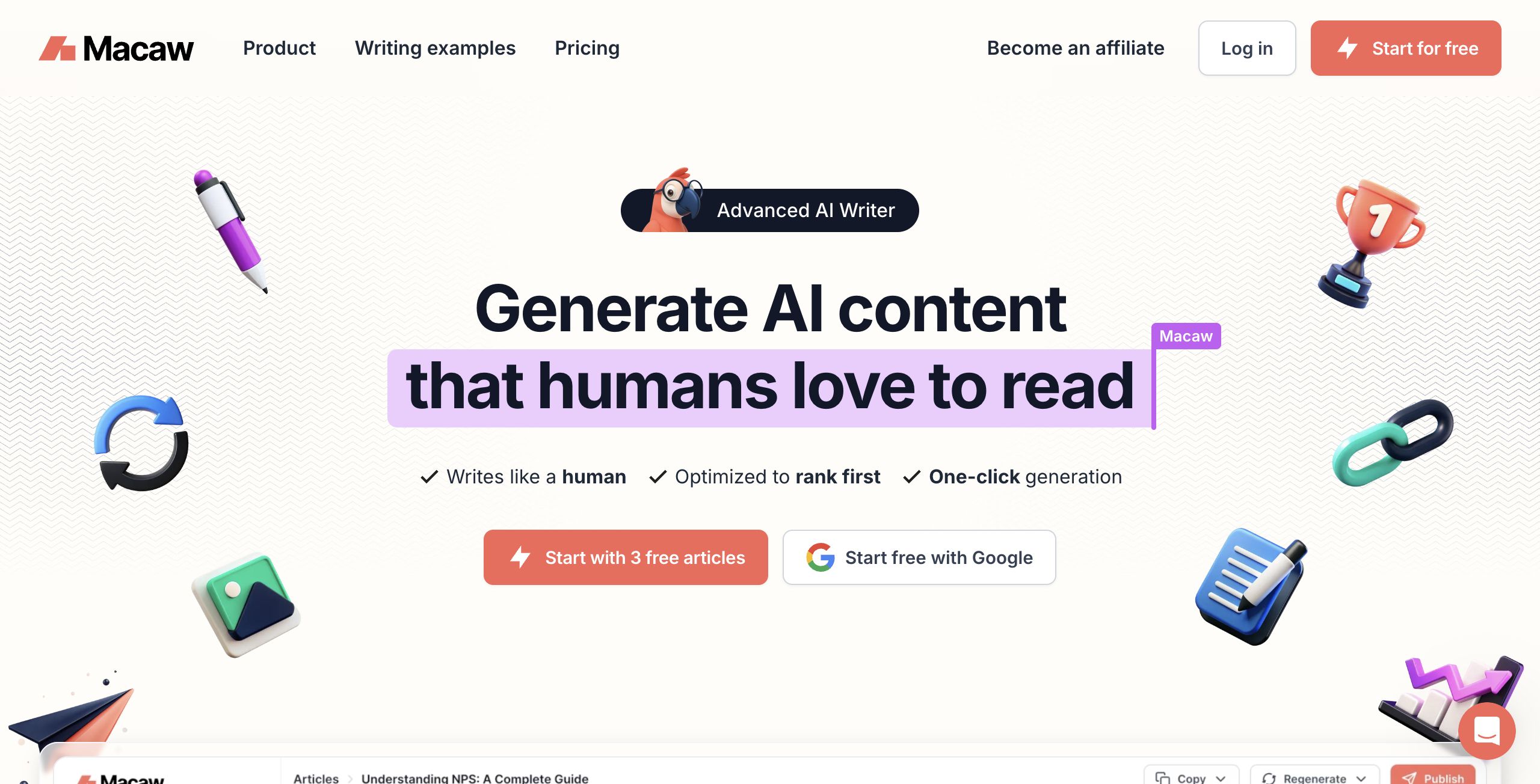 - Human-Like Writing: With a focus on natural language and brand tone, Macaw produces content that resonates as if written by a human.