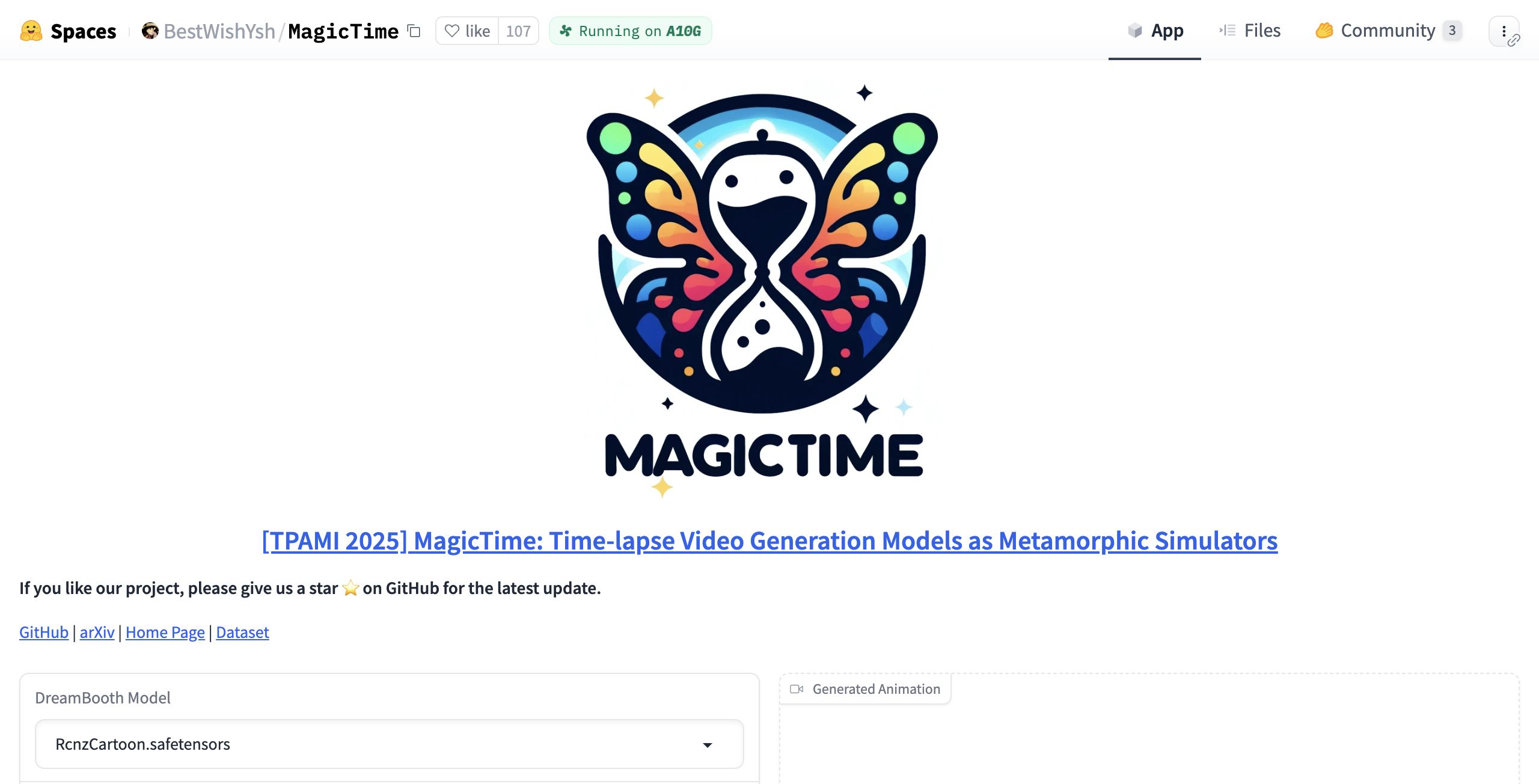 MagicTime is an innovative software tool designed to generate time-lapse videos with enhanced realism. It caters to researchers, developers, and video enthusiasts who are seeking advanced methods for video generation. With its focus on improving the fidelity of generated videos through the use of metamorphic simulators, MagicTime has captured attention in the AI and video production communities. This review explores its core features and overall value within its niche.