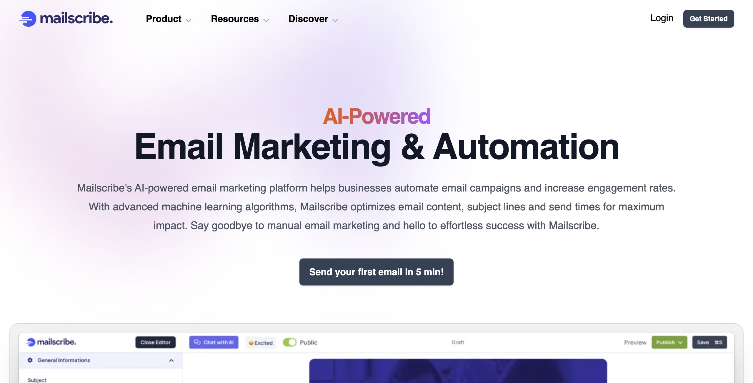 Mailscribe is an AI-powered email marketing platform designed to help businesses automate their email campaigns and boost engagement rates. Aimed primarily at marketing teams, small to medium-sized businesses, and enterprises looking to streamline their email marketing efforts, Mailscribe leverages advanced machine learning algorithms and AI-driven tools to make email creation and campaign management more efficient. This review is timely, as businesses continuously seek solutions that can alleviate the manual work involved in email marketing while driving better results.