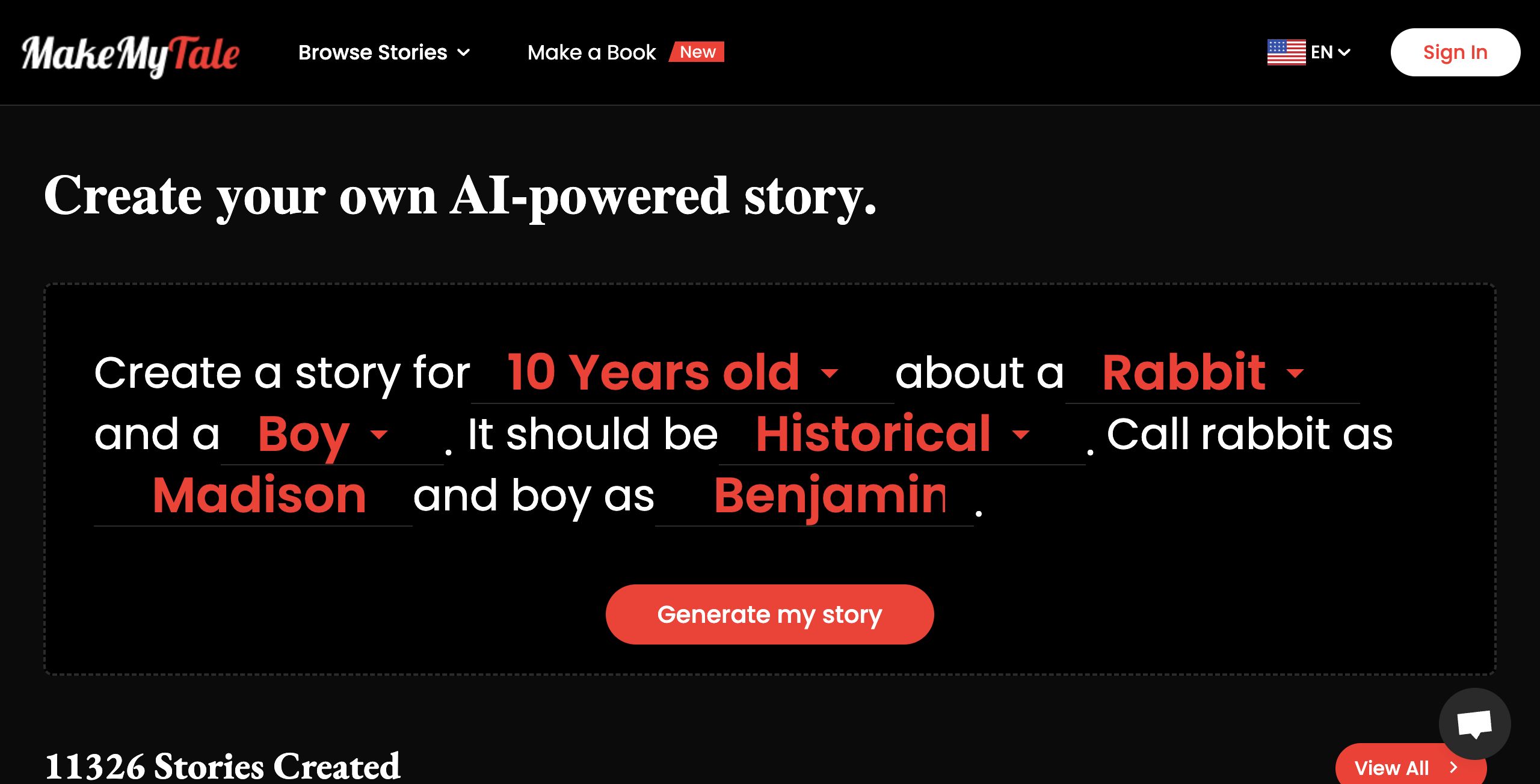 Open 'MakeMyTale' Website