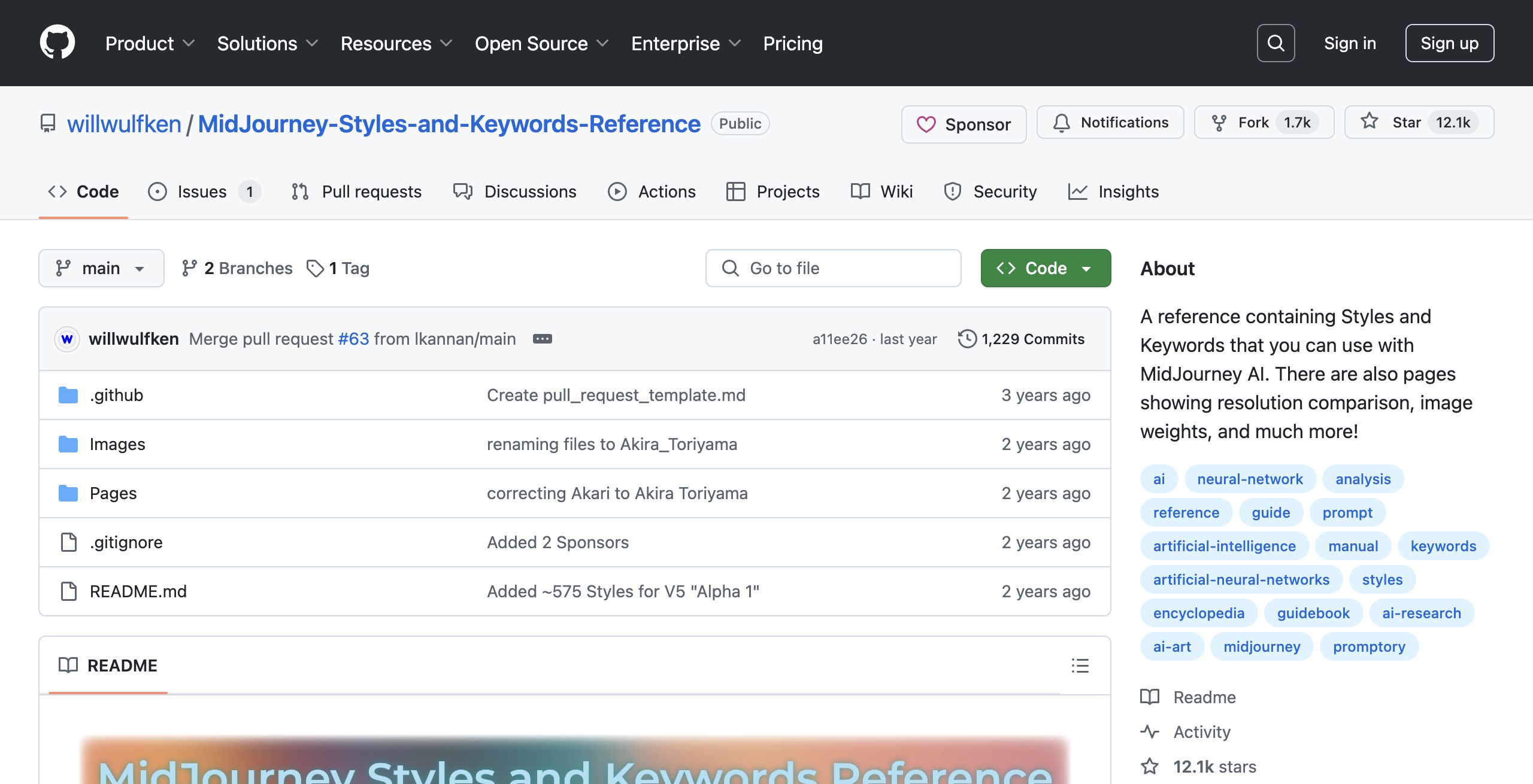 MidJourney Styles and Keywords Reference is a comprehensive reference guide designed specifically for MidJourney AI users who want to explore and expand their creative potential. Developed as an open-source resource, this guide compiles a vast array of styles and keywords that you can integrate into your MidJourney prompts. It is especially useful for digital artists, designers, and AI enthusiasts seeking inspiration or technical details about MidJourney’s capabilities. The guide’s relevance is underlined by the growing popularity of MidJourney AI for creative projects and the need for accessible resources that help users navigate its extensive feature set.