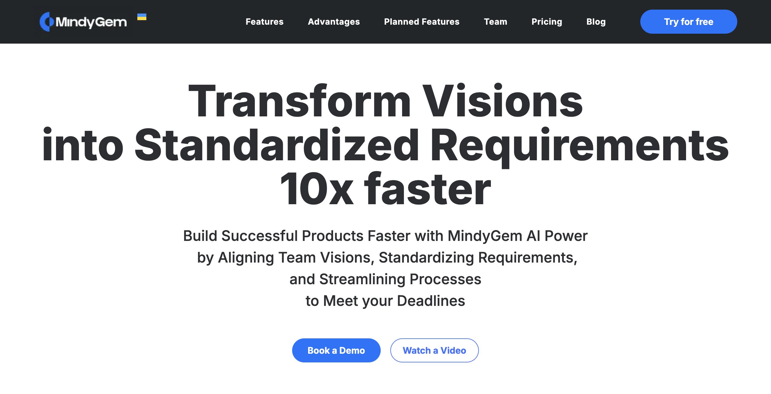 Key features of MindyGem include the ability to significantly reduce the need for frequent meetings, accelerating the requirements gathering process and potentially shortening the timeline for developing a minimum viable product (MVP). The tool enhances product quality with precise documentation and a user-friendly interface that centralizes documents, specifications, and requirements.