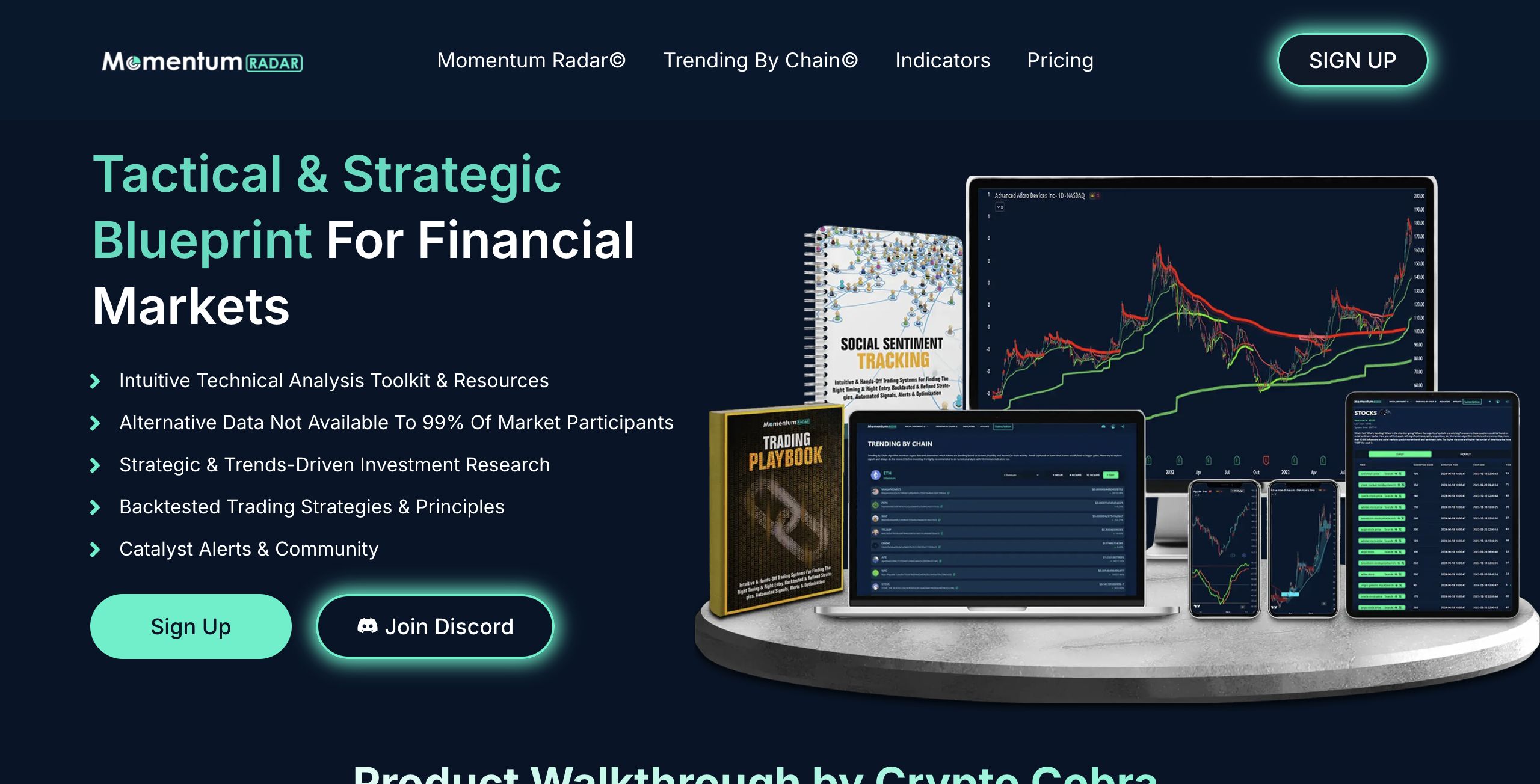 Momentum Radar© is an advanced research and technical analysis toolkit specifically designed for cryptocurrency and stock investors. Developed by a team with deep roots in technology, investment banking, and trading, this software is tailored to those seeking a comprehensive edge in understanding market dynamics. Its relevance in today’s volatile financial landscape lies in its ability to simplify complex market data, filter informational noise, and provide actionable insights that are hard to come by through traditional channels.