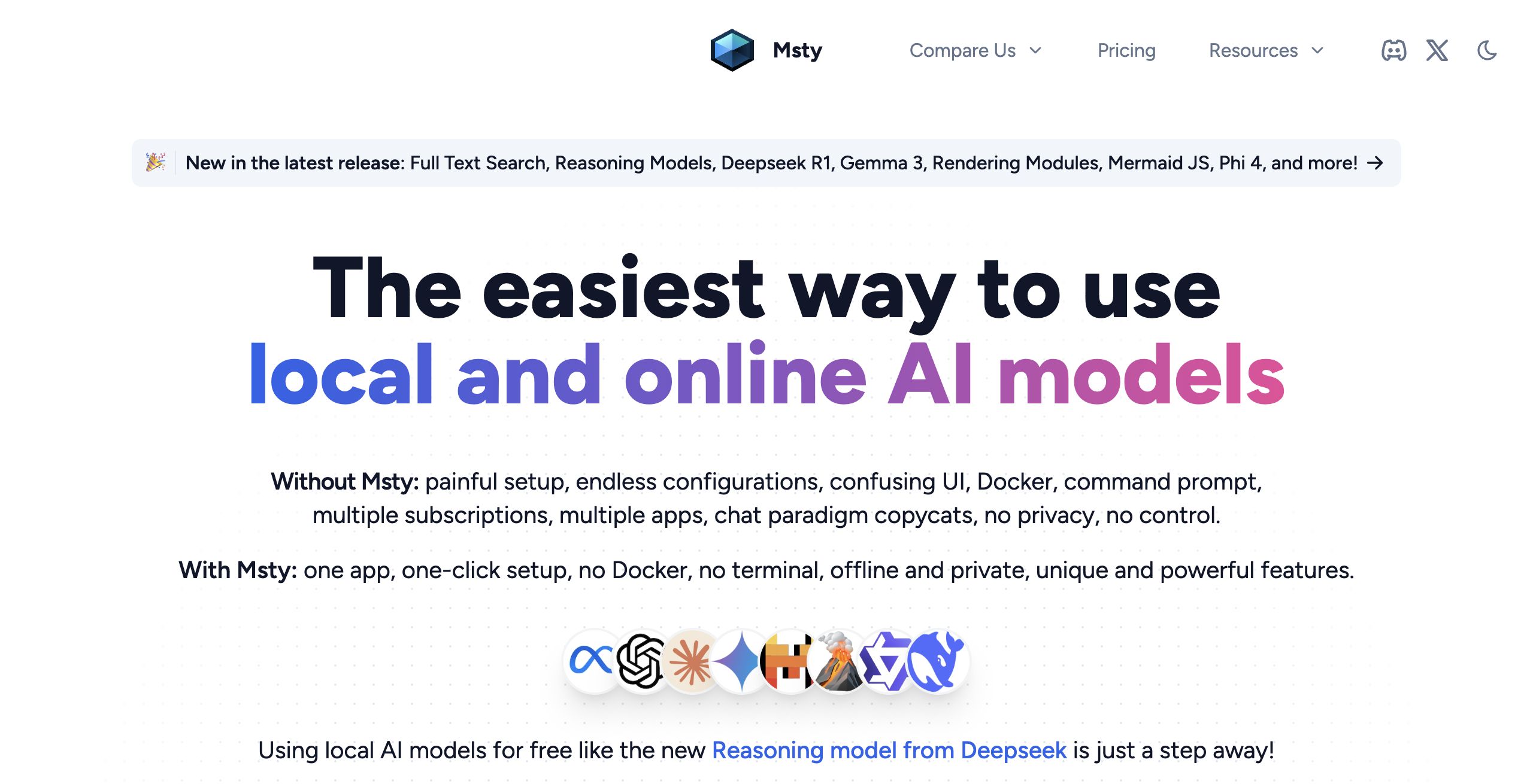 Msty comes packed with a variety of features that set it apart from its competitors: