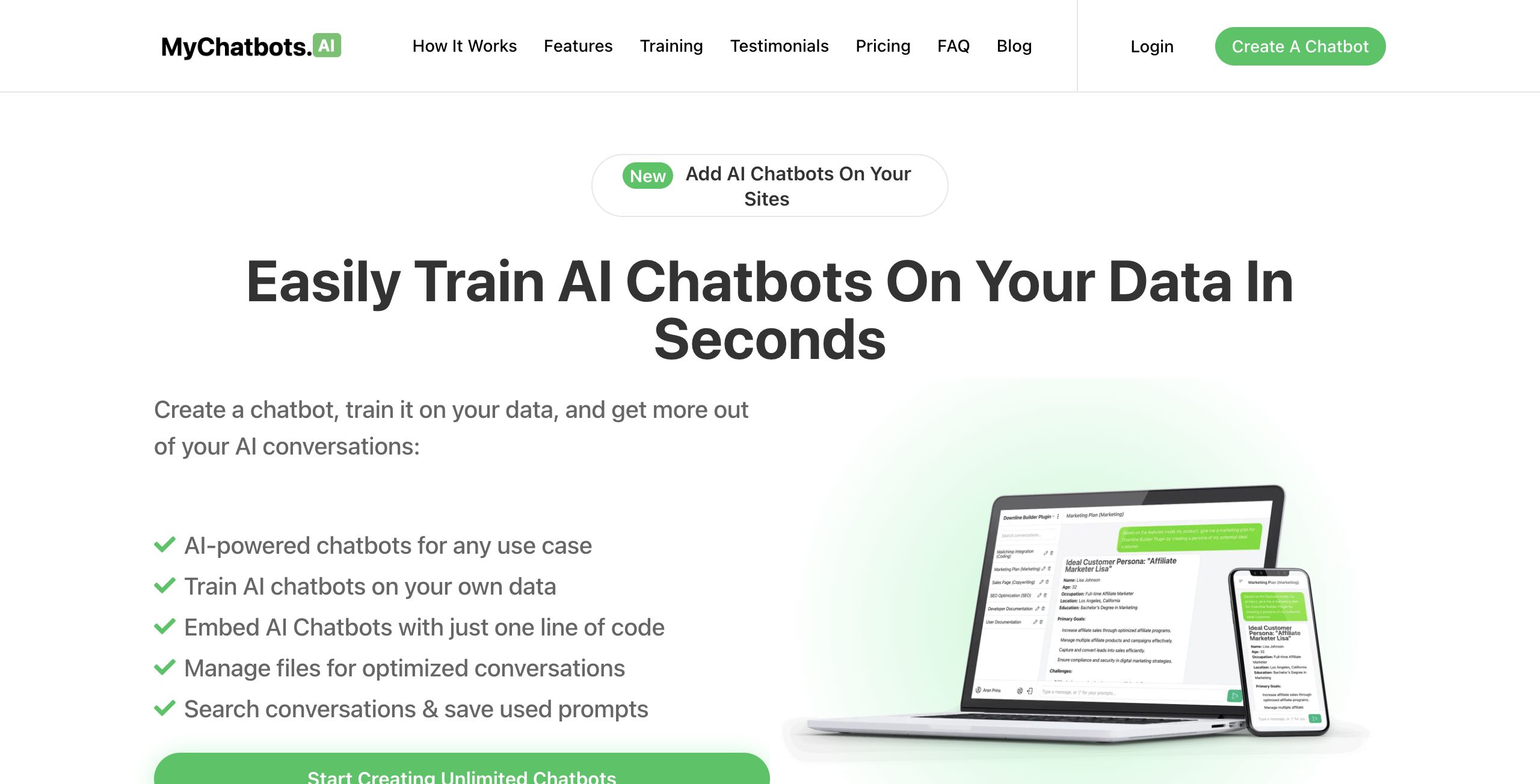 - Highly customizable AI chatbots that can be trained on user-specific data.