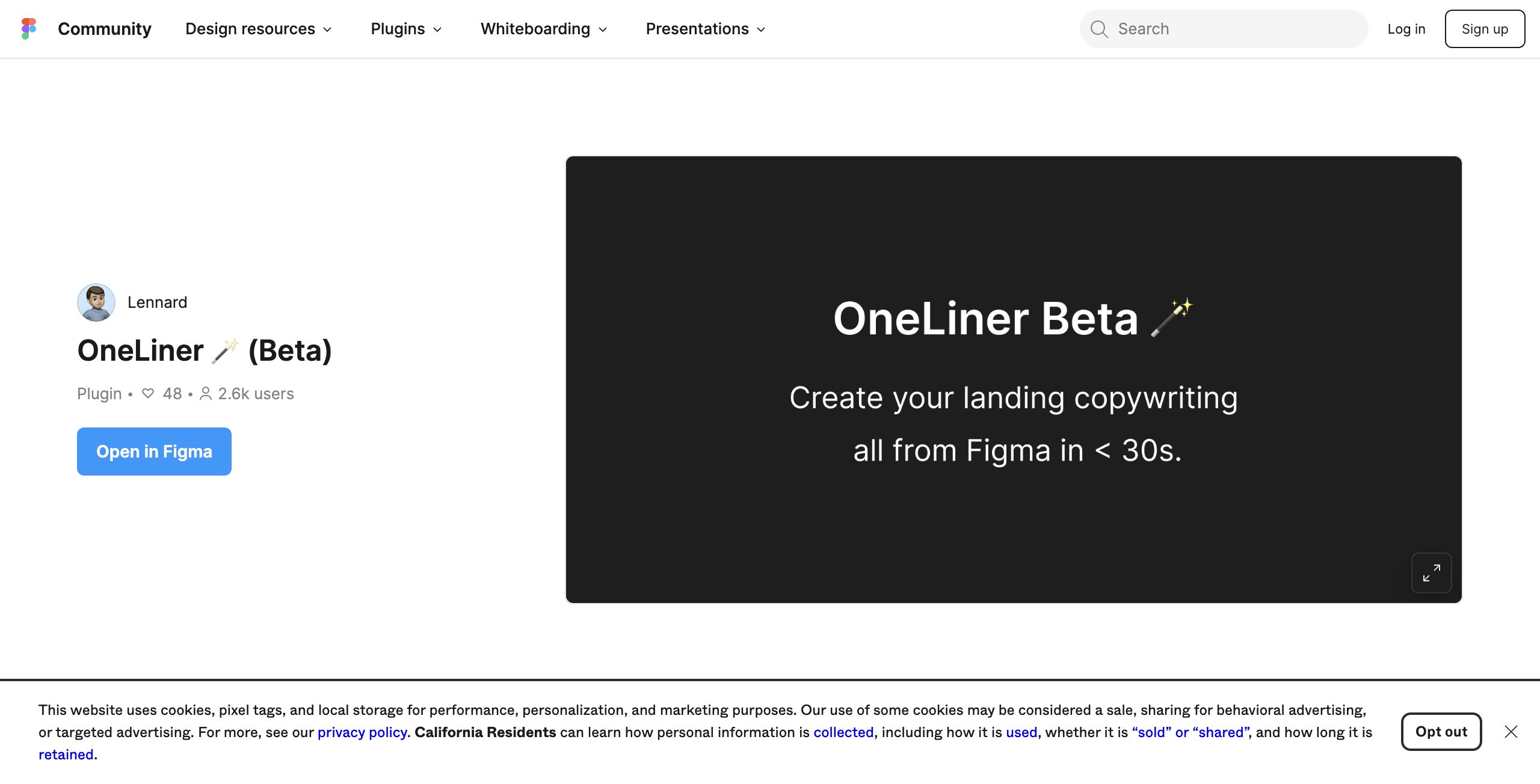 Currently in beta and offered at no cost, this plugin stands out by integrating seamlessly with Figma, enabling users to create visually appealing designs alongside their copy. The combination of speed, efficiency, and ease of use makes OneLiner a valuable tool for anyone looking to produce impactful landing page content effectively.