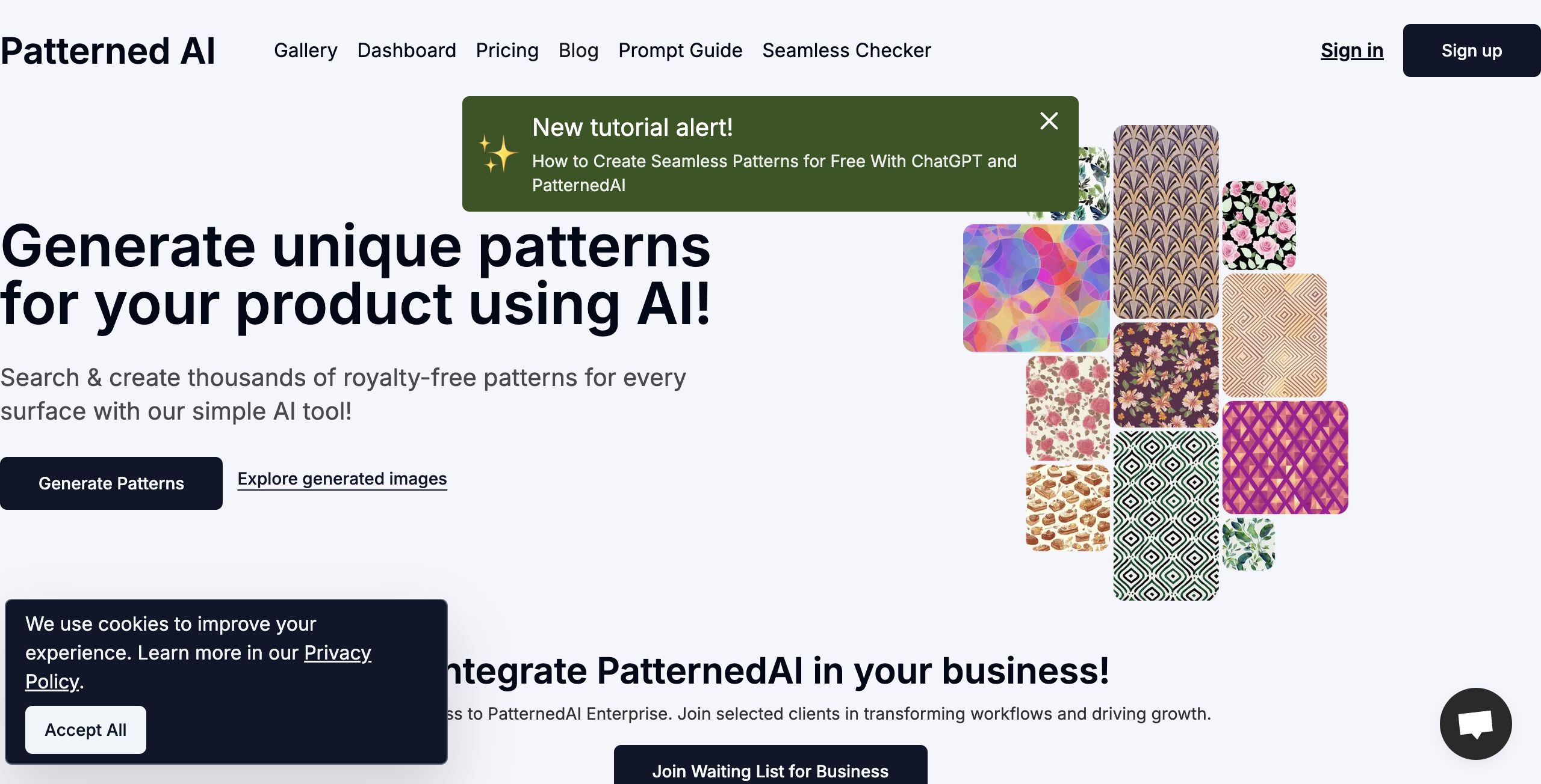 - Seamless Design Creation: With the focus on generating repeatable, unique patterns without visible seams, PatternedAI streamlines the process for commercial use on any surface.