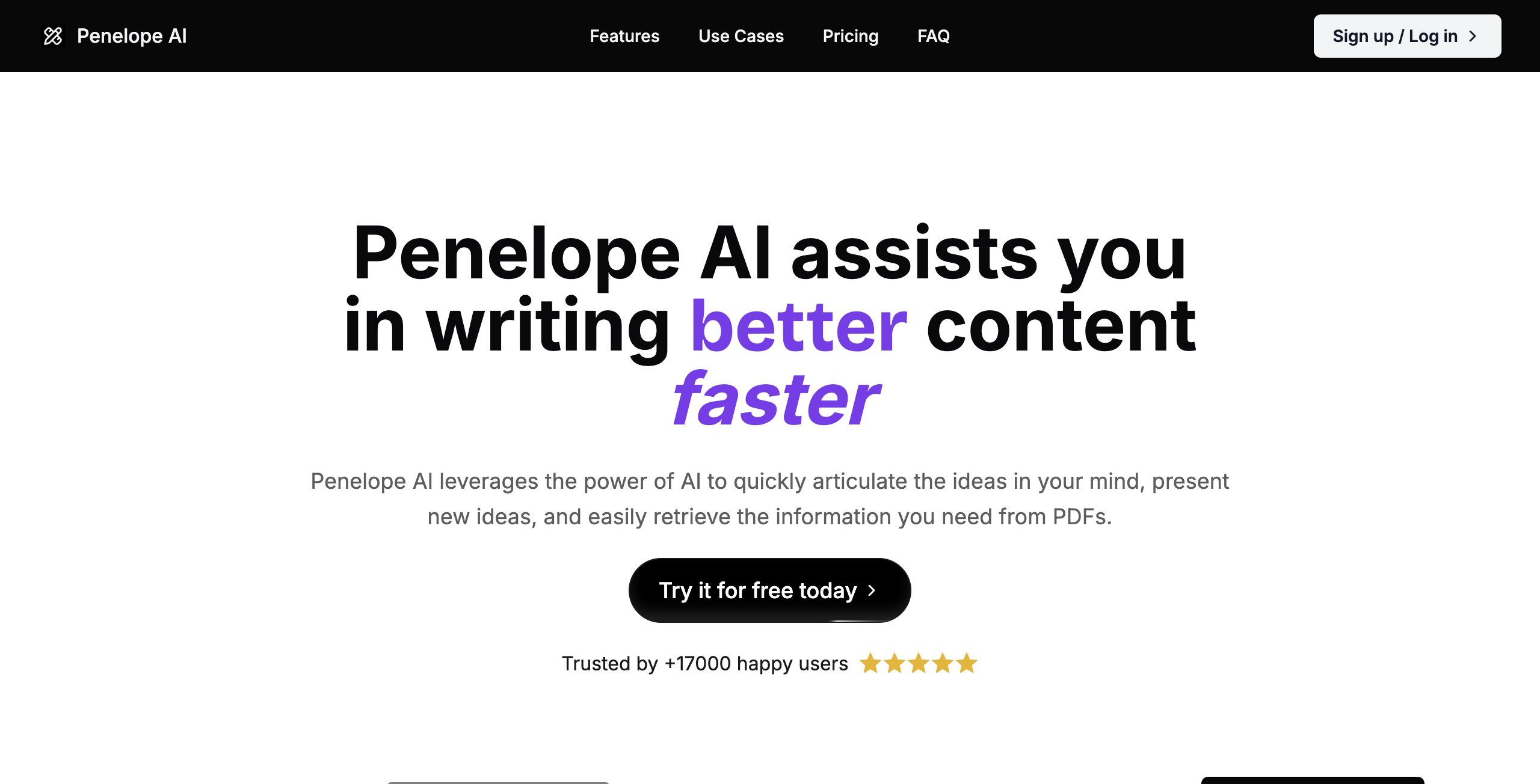 Overall, Penelope AI is a powerful and versatile writing assistant that can significantly boost productivity for individuals and teams looking to enhance their content creation process. It's especially beneficial for bloggers, researchers, and professionals who need a reliable tool for generating, improving, and managing written content. However, those who only require occasional assistance may find the free plan somewhat limited. In summary, Penelope AI is a strong recommendation for anyone looking to write more effectively and efficiently, with its comprehensive features and flexible pricing packages setting it apart from many competitors in the market.