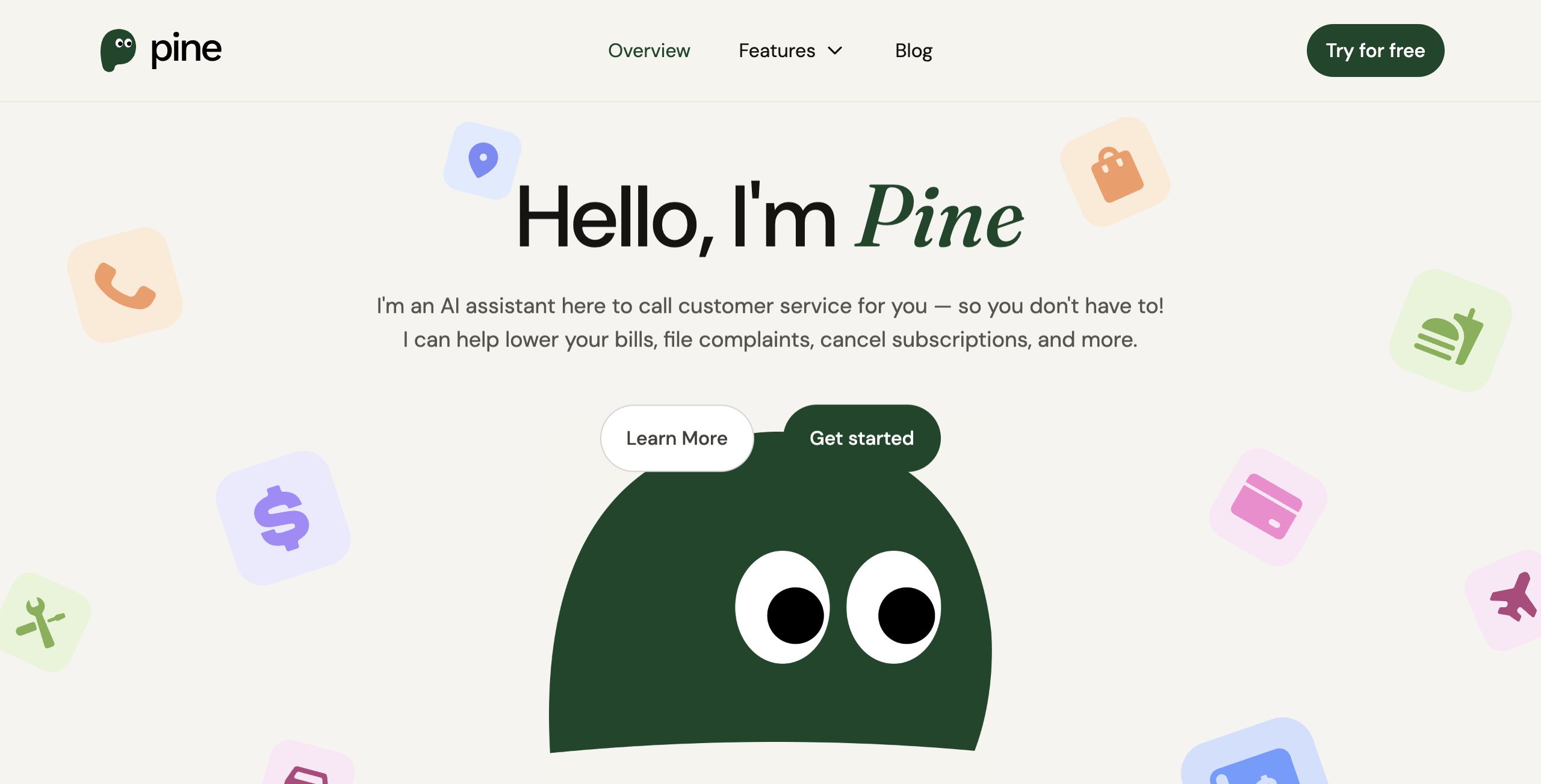 - Automated Phone Calls: PineAI can make calls on behalf of the user to address issues such as fee disputes, subscription cancellations, travel arrangements, reservations, and bill negotiations.