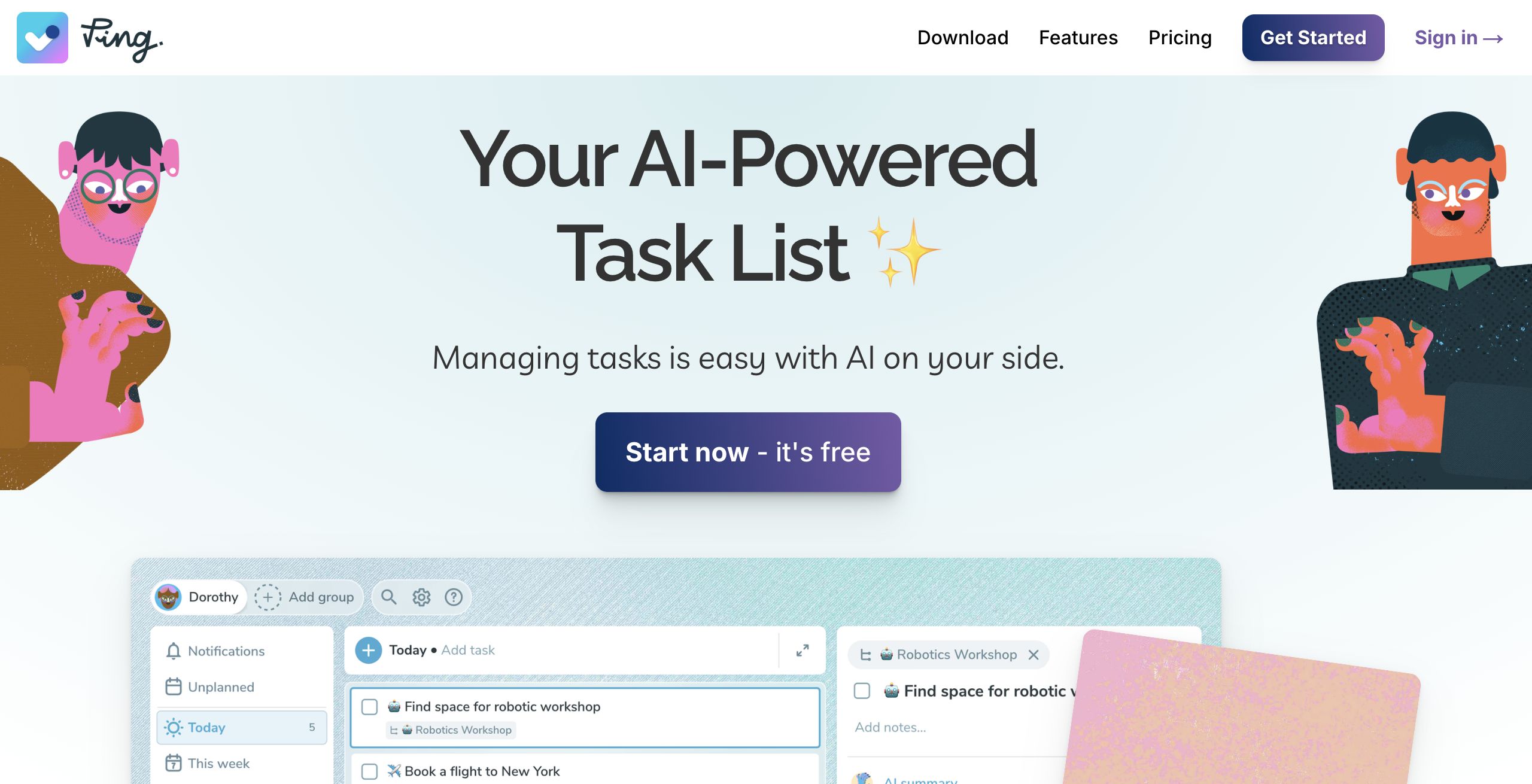 Ping AI Task Assistant is available for free, making it an attractive option for individuals and teams who want to leverage AI-driven task management without financial commitment. Considering the extensive functionality and the ease of integrating with daily workflows, the tool offers excellent value, especially when compared to other premium solutions in the productivity space.