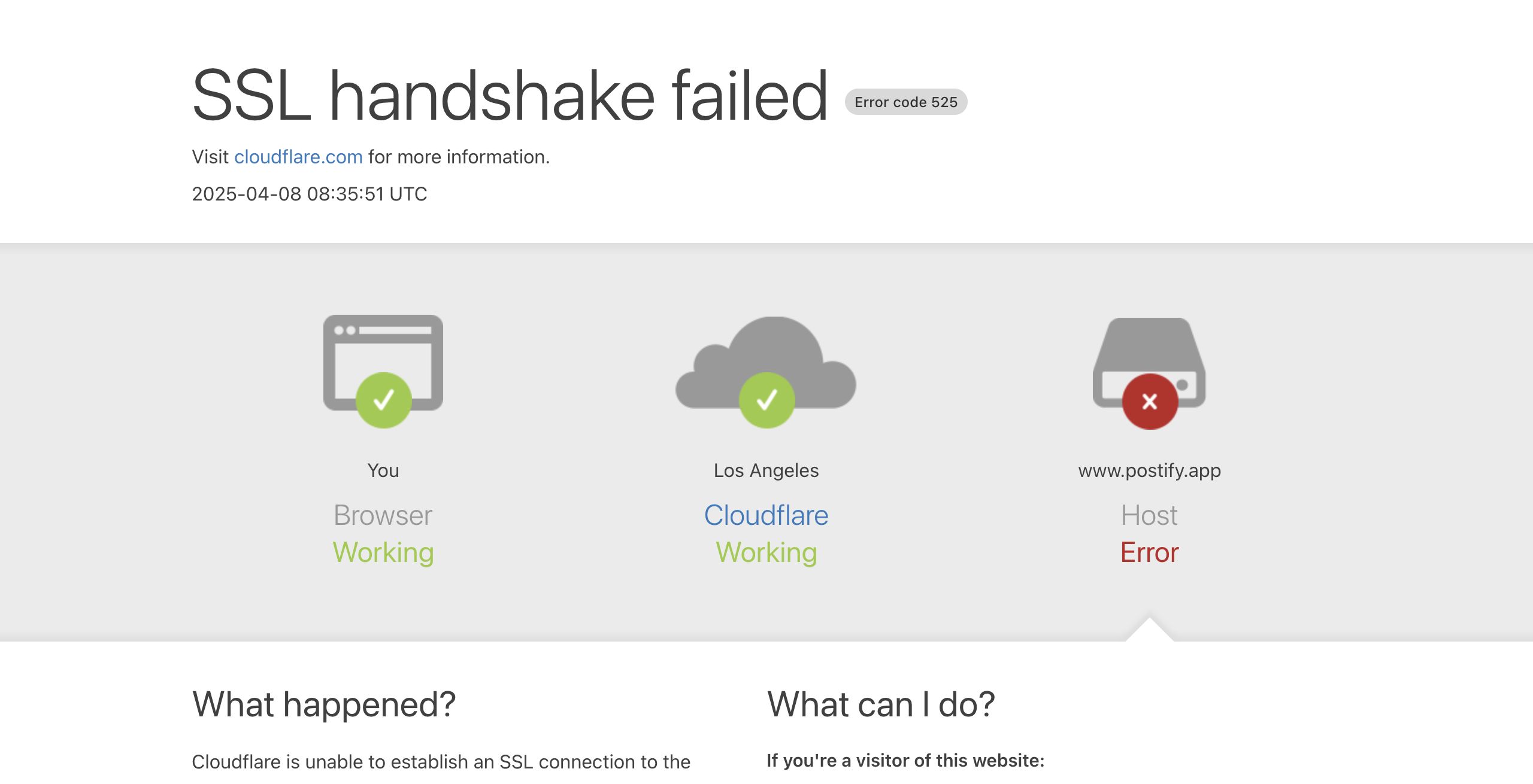 Overall, Postify presents a robust toolset ideal for social media managers and marketing teams seeking to enhance their digital presence with an all-in-one platform. Its AI-powered content creation and premium scheduling features stand out as significant benefits. However, the recurring SSL connection issues as evidenced by the website errors indicate technical challenges that users should be mindful of before committing fully to the platform. Potential users who prioritize innovative content generation and integrated analytics may find Postify very appealing, while those who require consistently reliable access and impeccable website performance might consider waiting for these technical concerns to be resolved.