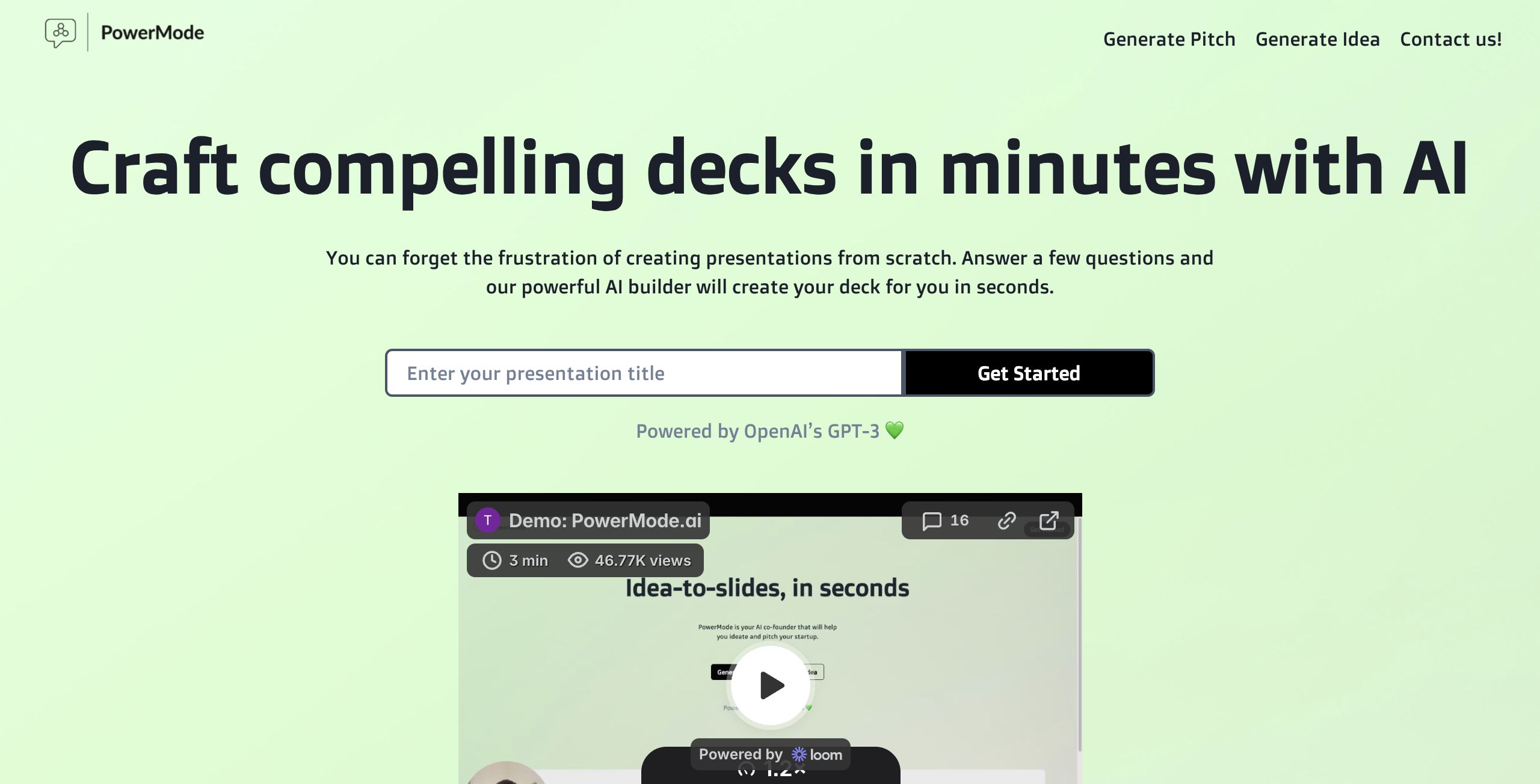 Power Mode AI is an AI-powered tool designed to help startup founders and business professionals ideate and pitch their next venture by creating compelling pitch decks in minutes. With its focus on simplifying the presentation creation process, this tool is particularly relevant for entrepreneurs seeking to quickly develop professional decks without spending excessive time on design or content formatting.